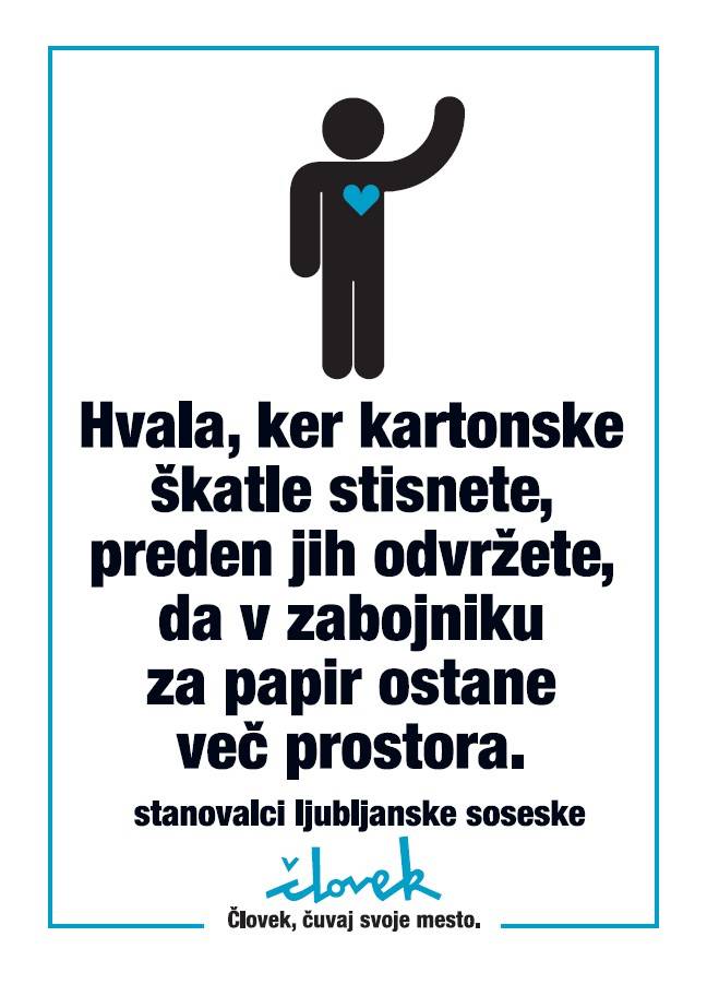 - Hvala, ker kartonske škatle stisnete, preden jih odvržete, da v zabojniku za papir ostane več prostora.