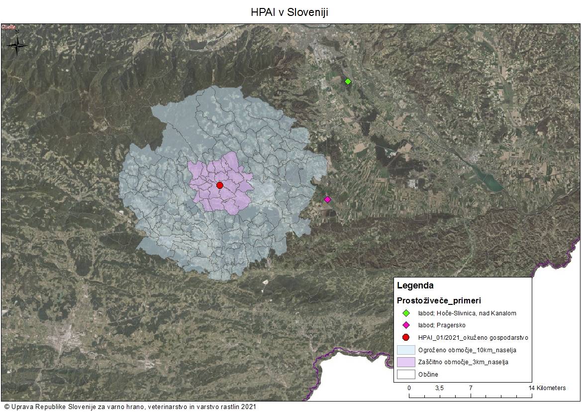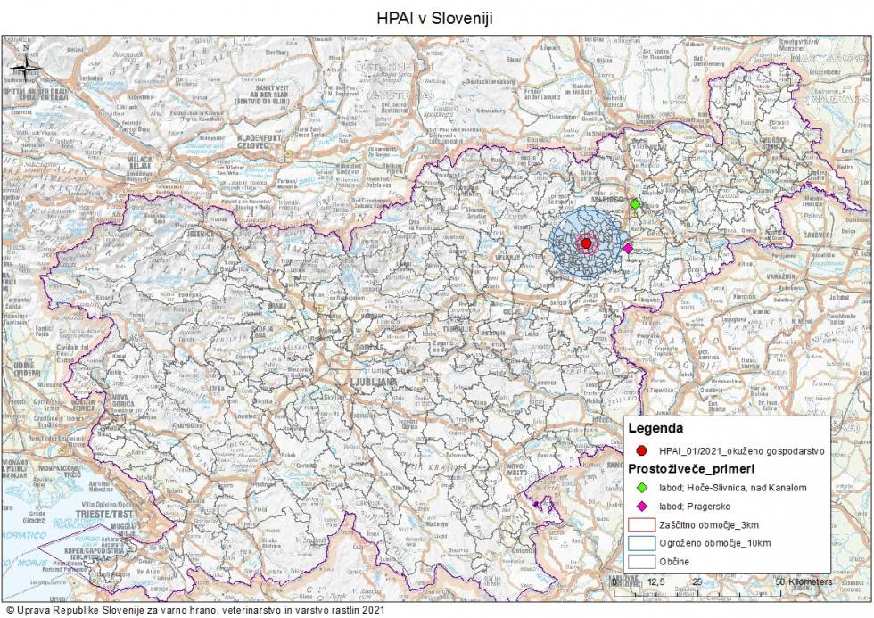 Aviarna influenca podtip H5N1 je bila konec decembra potrjena tudi pri prostoživečih pticah. Zaradi pojava pri prostoživečih pticah in glede na situacijo pri perutnini je državno središče za nadzor bolezni sprejelo ukrepe, ki veljajo za območje celotne Slovenije.