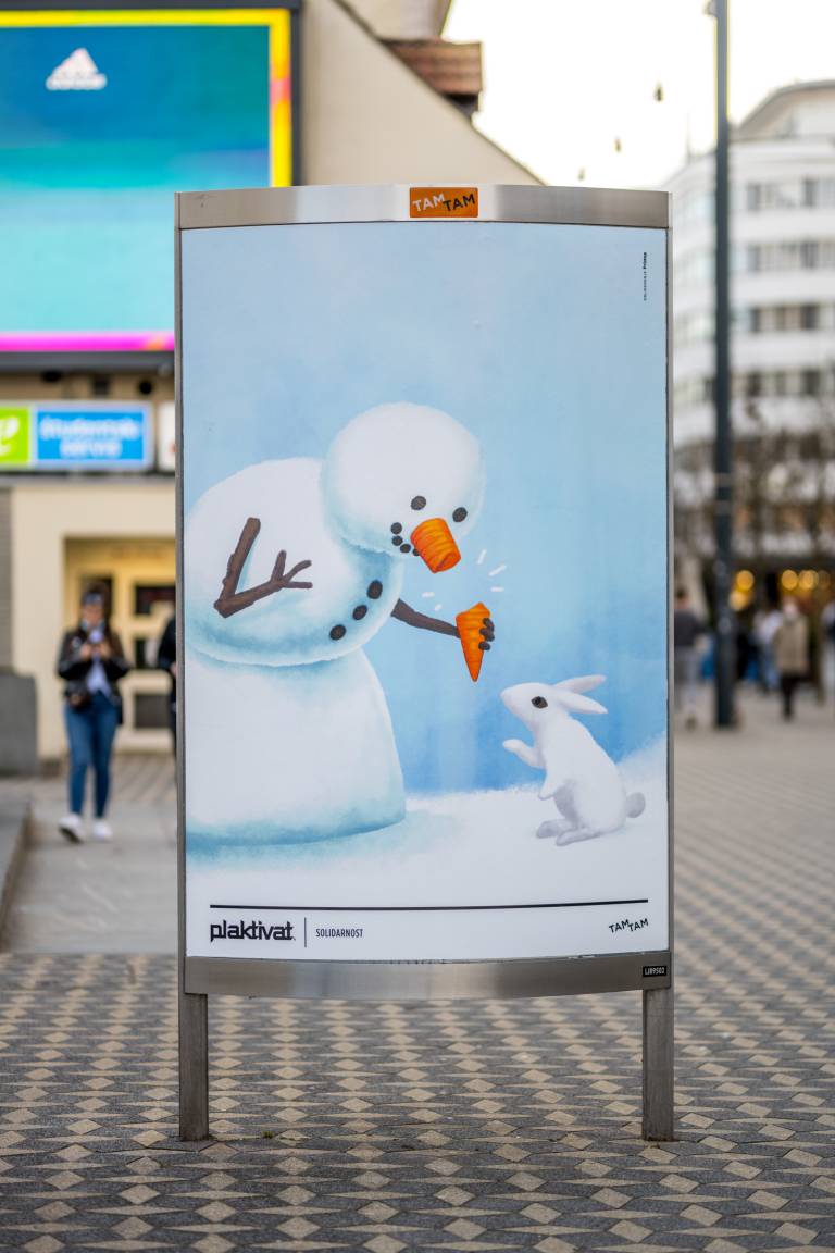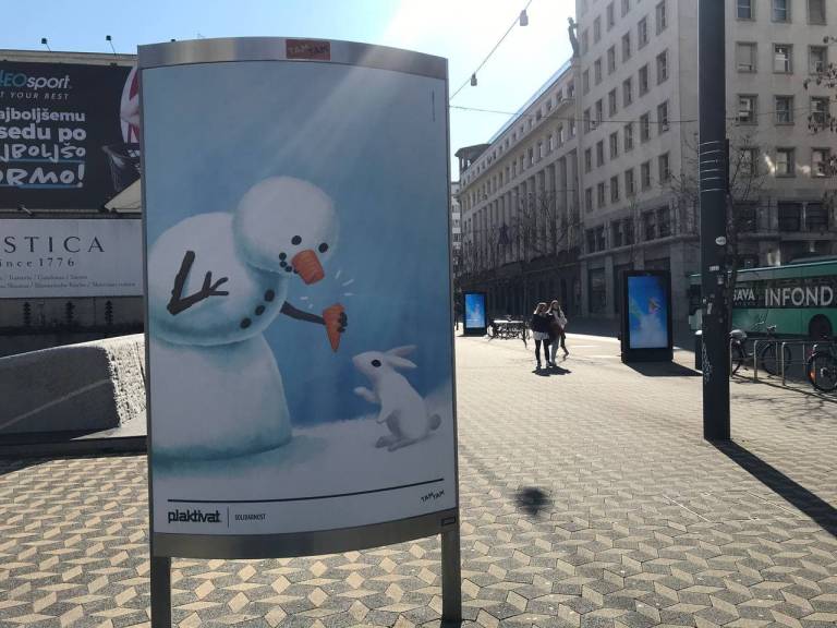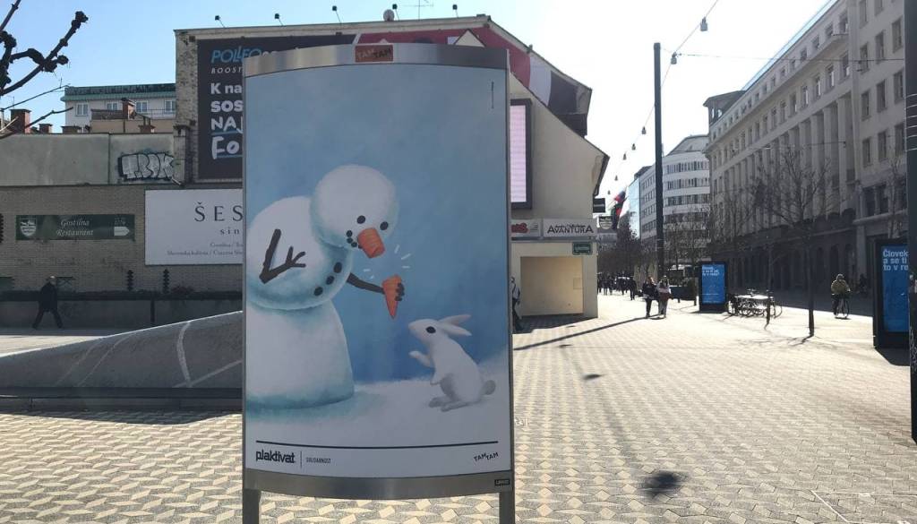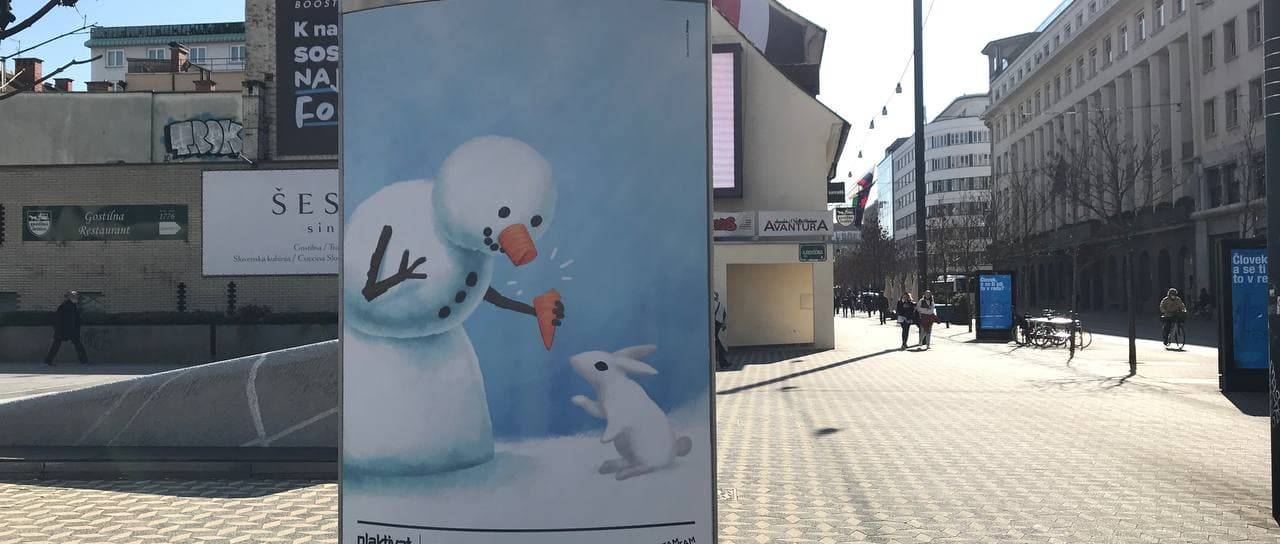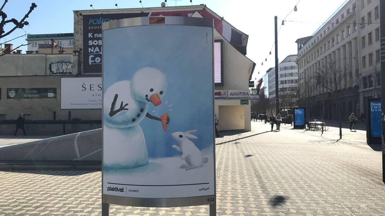 Na več koncih po Ljubljani na ulicah mimoidoče pozdravlja plakat »Snežak« in nas nagovarja k solidarnosti. Preverili smo, kdo je ta snežak.
