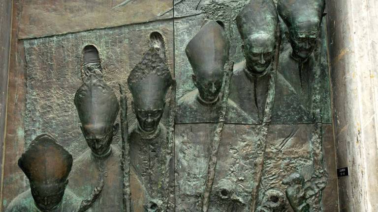 Odrasli medtem opazujejo druge stvari: tako je lani bilo v ospredju njegova mitra, torej pokrivalo, ki je bilo brez križa, simbola krščanstva.