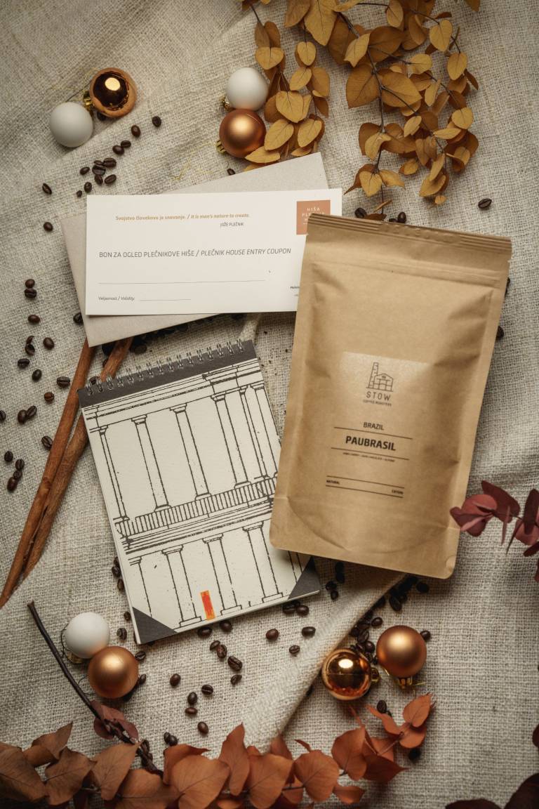 V paketih vas čakajo beležke, platnene vrečke, skodelice, razglednice z umetniškimi motivi, steklenica Muzejska voda, darilne vstopnice, monografije o zgodovini Ljubljane in arhitektu Jožetu Plečniku, letno članstvo v galeriji in pakete sveže pražene kave iz kavarne STOW, ki zaradi ukrepov prav tako ne more obratovati.