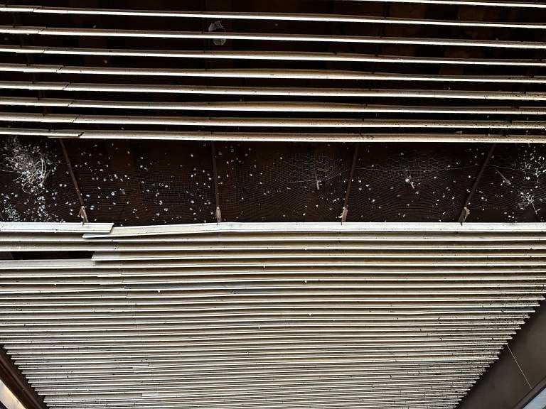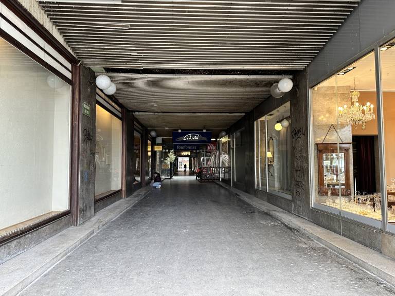 Tudi streha pasaže je že videla boljše dni. Kljub temu da je podhod sam po sebi dobro osvetljen, ga nekoliko popestrijo vitrine in lokali, je še vseeno zelo vidno, da ga že pošteno načenja čas.