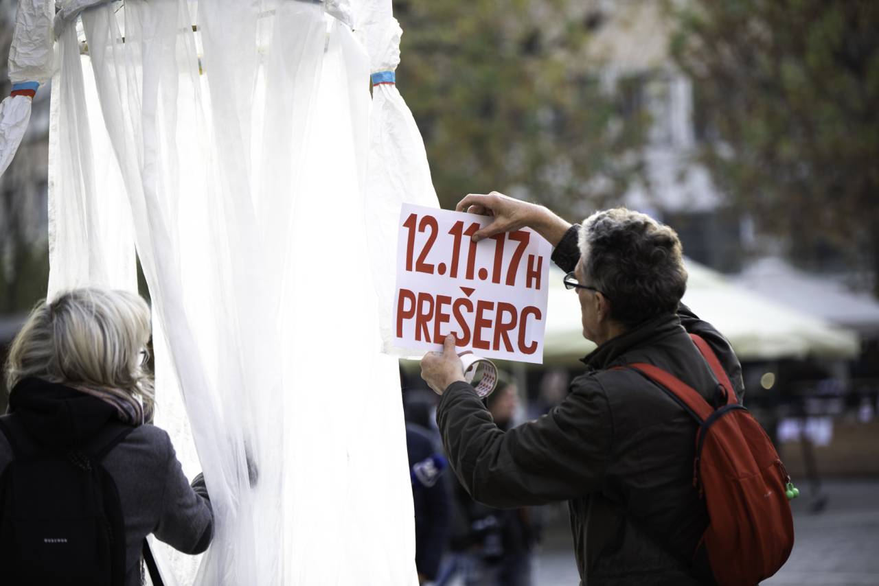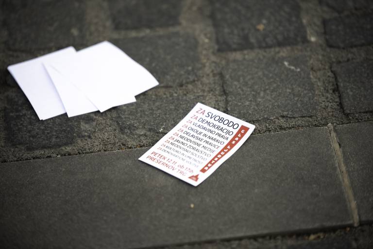 Danes so na Prešernovem trgu protestniki pozvali k udeležbi na vseslovenskem protestu, ob tem pa izpostavili, da naj ta v petek poteka varno.