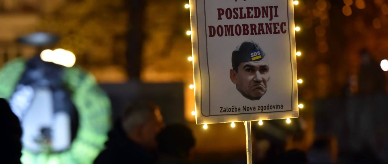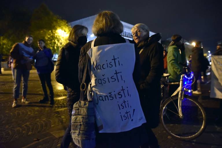 Na današnjem protestu Protestna ljudska skupščina obsoja polaganje venca padlim domobrancem ob dnevu mrtvih. Pravijo, da je šlo za »načrtno provokacijo« Janeza Janše, na protestu pa opozarjajo na pomen boja proti fašizmu in nacizmu v naši zgodovini.