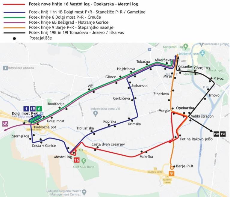 Dodatna pomembna novost na območju je nova linija Ljubljanskega potniškega prometa številka 16 na relaciji Mestni log – Opekarska, ki so jo uvedli v okviru sprememb in optimizacije linij Ljubljanskega potniškega prometa ter v skladu z željami potnikov.