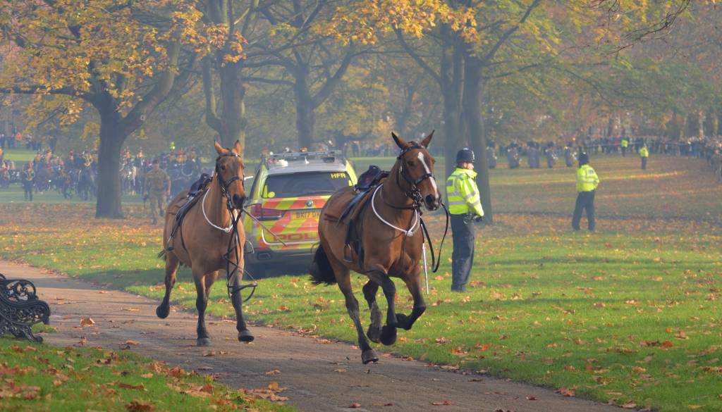 Konj, ki po doslej znanih podatkih ob svoji pustolovščini ni bil poškodovan, je med svojim dirjanjem po prestolnici s kočijo povzročil škodo na treh osebnih vozili.