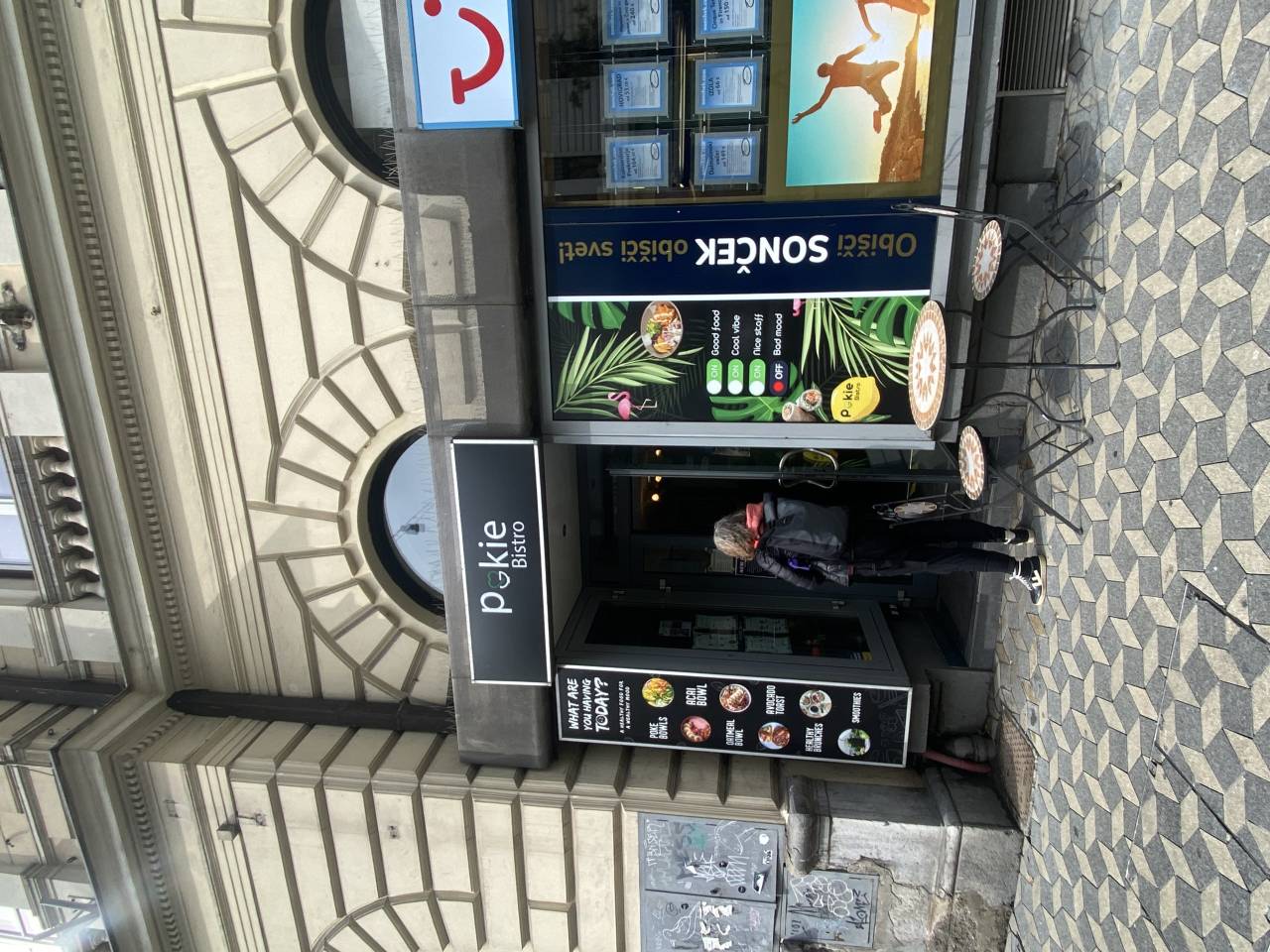 V začetku letošnjega leta se je namreč prav na Slovenski, med trgovino z oblačili in turistično agencijo, odprl prikupen Pokie Bistro, ki Ljubljančankam in Ljubljančanom, pa tudi radovednim turistom, ponuja poke sklede (»poke bowls«, kot jim pravijo v tujini), smutije iz zdravih, naravnih sestavin ter okusne, sveže zajtrke in brunche (je kdo rekel avokado toast?) – vse našteto lahko odnesete s seboj in pojeste kar na poti do naslednjega opravka.