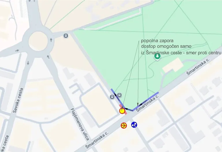 Dostop do Pokopališke ulice bo mogoč izključno iz Šmartinske ceste, in sicer v smeri od območja BTC proti središču mesta.