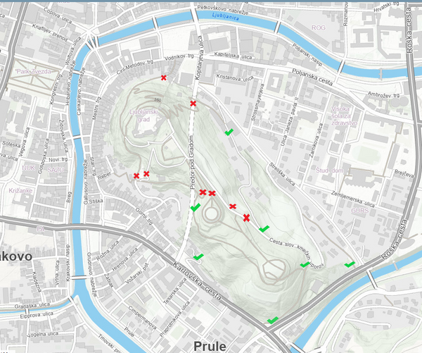 »Zaradi varnosti bo v času izvedbe sečnje in spravila lesa vzpostavljena popolna zapora poti na osmih točkah, in sicer na Osojni poti, Cesti slovenskih kmečkih uporov, Lončarski stezi, Mačji stezi, Grajskem drevoredu, Za ograjami, Lutkarski poti in Osojni stezi. Ta območja bodo zaprta vsak dan do petka, 17. januarja, med 7.30 in 17. uro, in takrat bo objekt Ljubljanskega gradu dostopen izključno z vzpenjačo.