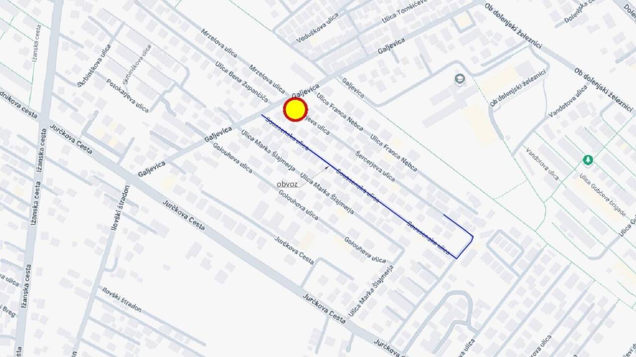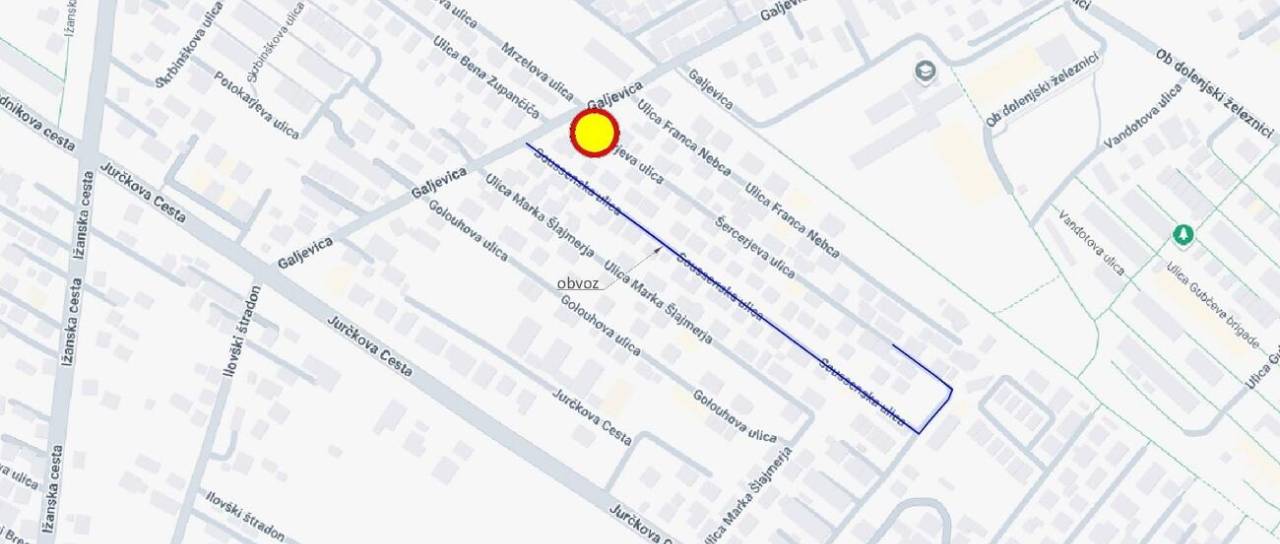 Mestna občina Ljubljana obvešča vse udeležence v prometu, da bo v četrtek in petek, 8. in 9. avgusta 2025, popolna zapora Šercerjeve ulice pri križišču z Galjevico.