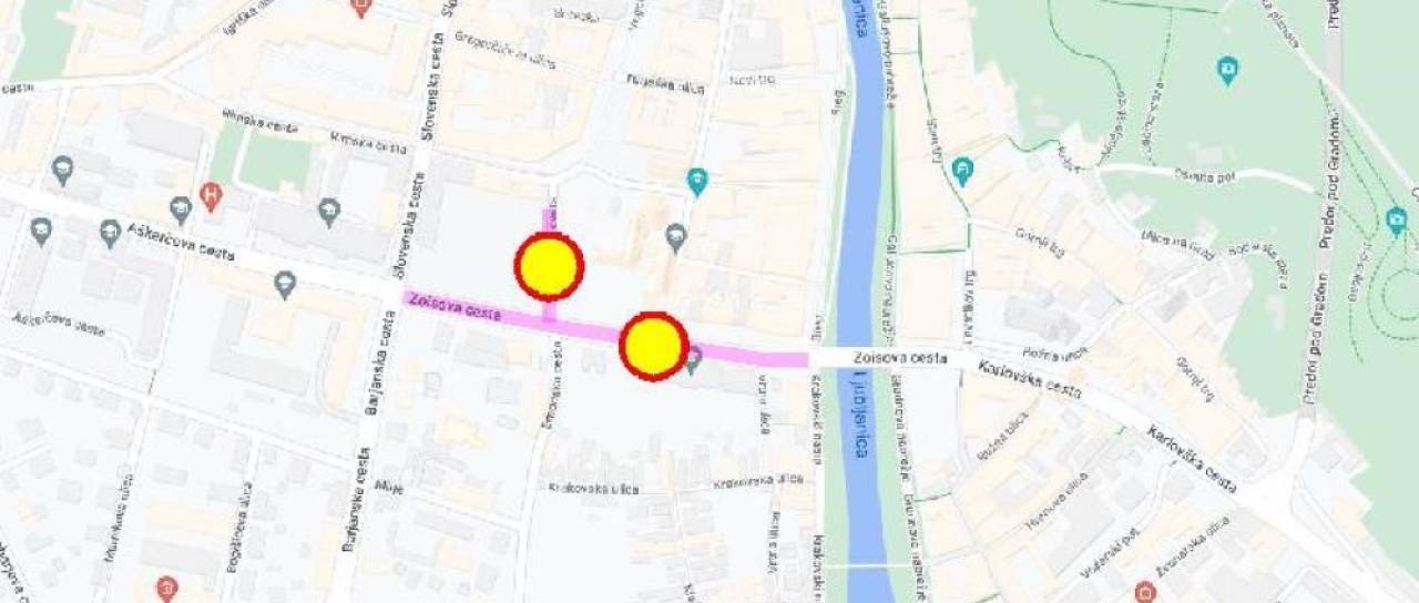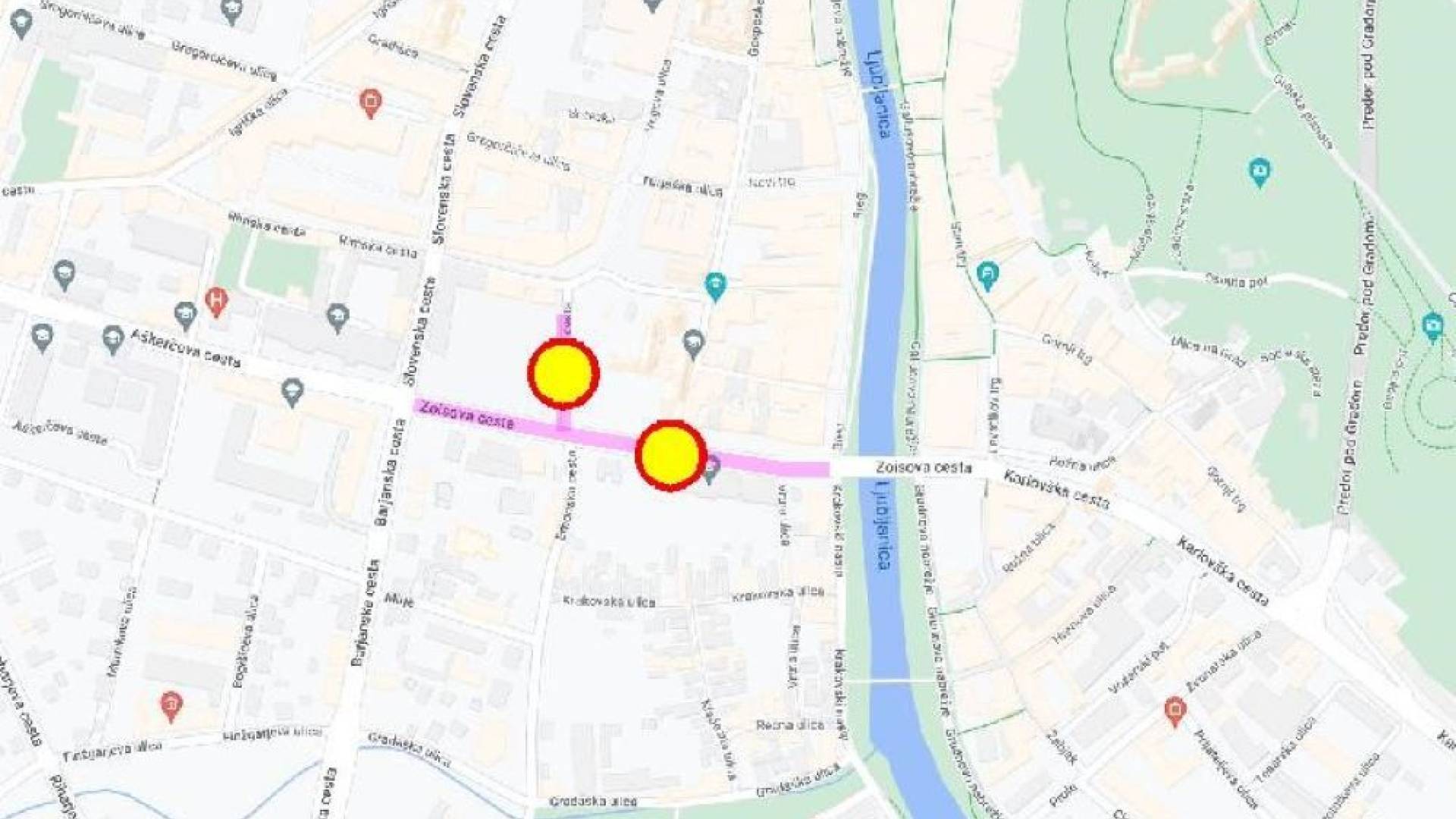 Zoisova cesta med Bregom in Slovensko cesto ter Hieronimova ulica bosta zaprti za ves promet: