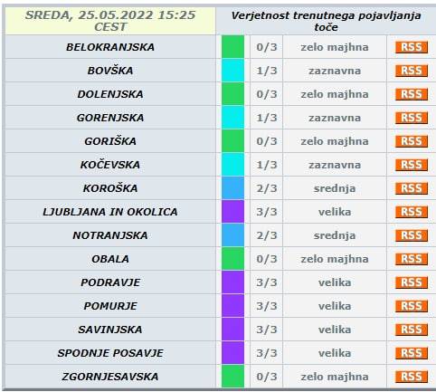 Geološki zavod Slovenije pa je obveščal, da je danes zaradi napovedanih neurij in nalivov, povečana verjetnost pojavljanja zemeljskih plazov predvsem v severovzhodni Sloveniji.