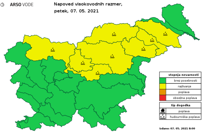 Danes popoldan in v noči na soboto se bo vodnatost rek v večjem delu države povečala, najbolj v severni in severovzhodni Sloveniji.