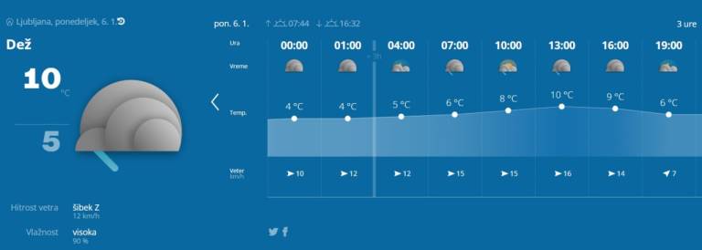 Agencija Republike Slovenije za okolje napoveduje, da bo v Murski Soboti hitrost vetra dosegla do 35 kilometrov na uro, sunki pa bi naj dosegli tudi do 79 kilometrov na uro. Močan vetre bo pihal tudi drugje, v Ljubljani bo nekoliko bolj mirno.