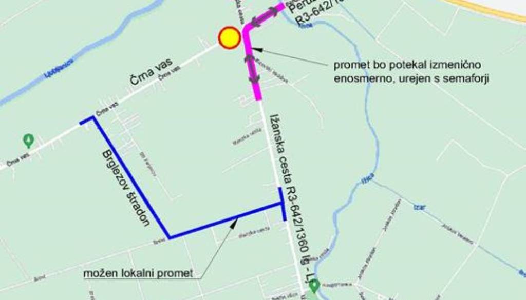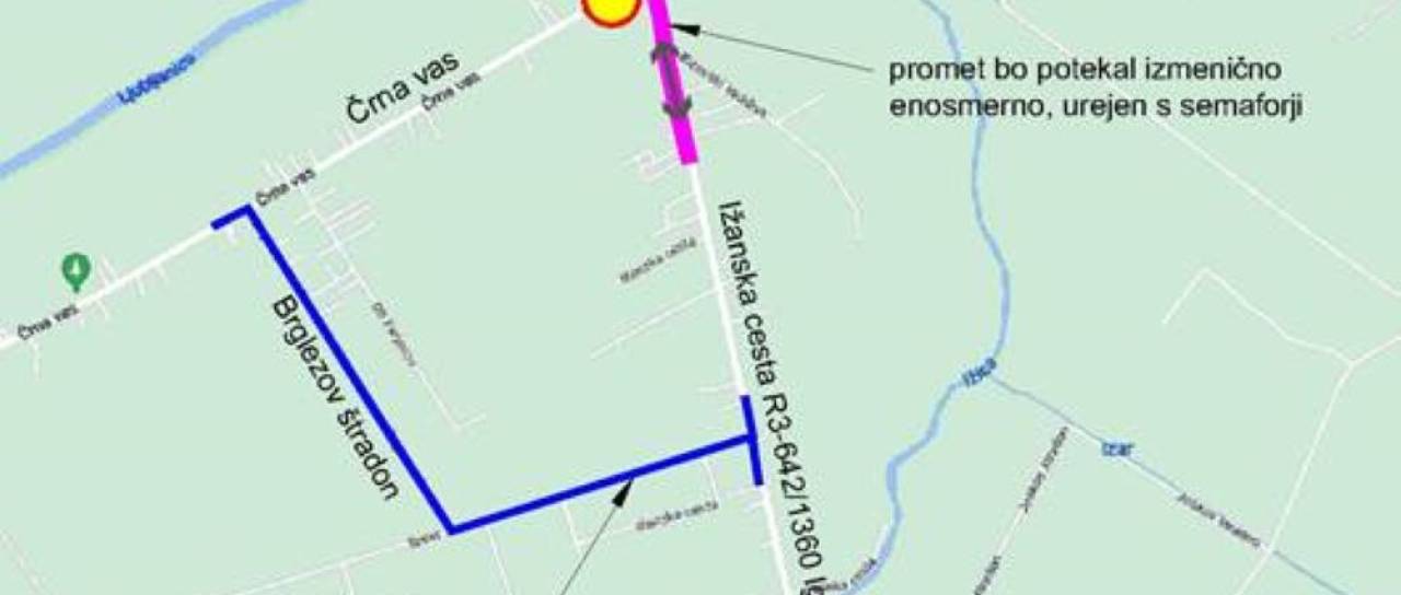 V nedeljo, 1. septembra 2024, bo zaradi izvedbe zaključnega sloja asfalta predvidoma vzpostavljena popolna zapora križišča Ižanska cesta – Peruzzijeva ulica – Črna vas, ki bo trajala do 6. ure zjutraj naslednjega dne.