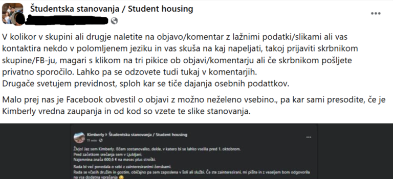 Eden od moderatorjev skupine je ob tem študente opozoril na previdnost. Pojavljajo se lažni oglasi in sumljivi kontakti: