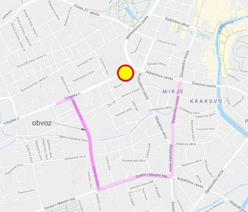 Od 11.30 do predvidoma 14.00 na Tržaški cesti popolna zapora vseh smernih pasov v smeri proti Bleiweisovi in Aškerčevi cesti (iz Aškerčeve in Bleiweisove ceste bo promet na Tržaško cesto možen). Obvoz bo preko Jadranske ulice, Ceste v Mestni log in Barjanske ceste.