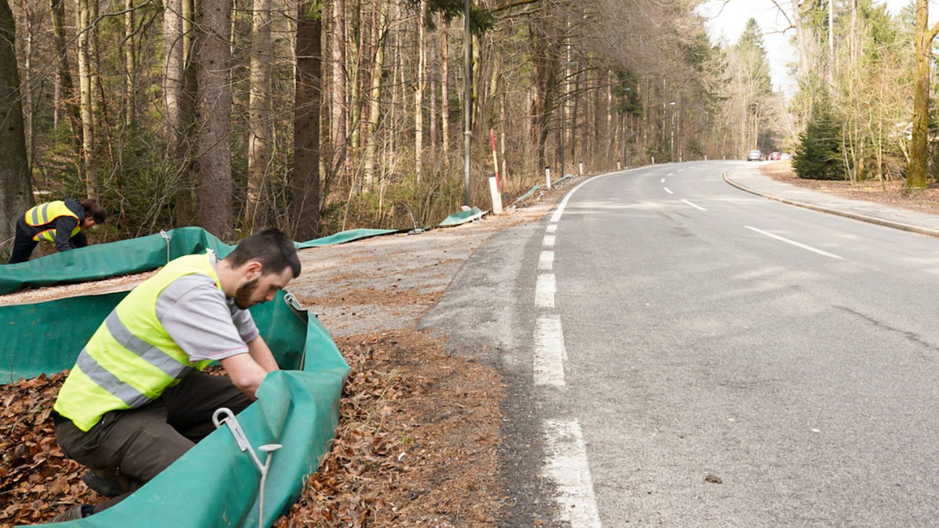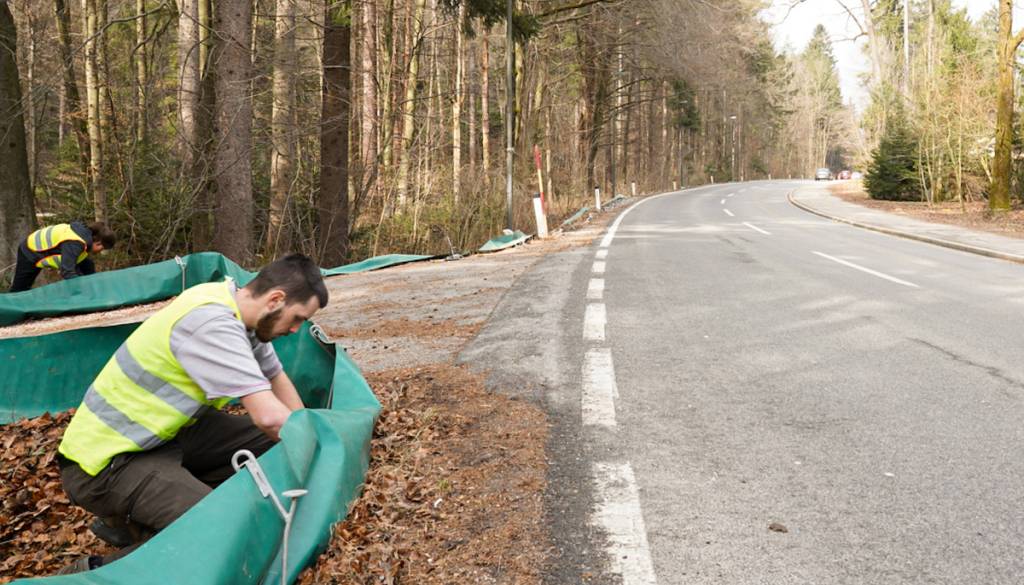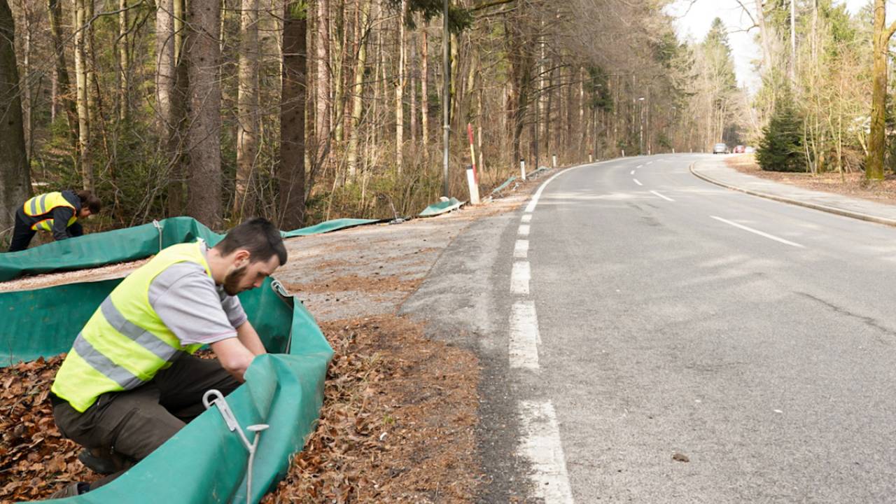 Ob Večni poti v Ljubljani tudi letos stoji varovalna ograja za dvoživke, ki jim preprečuje prehod cestišča.