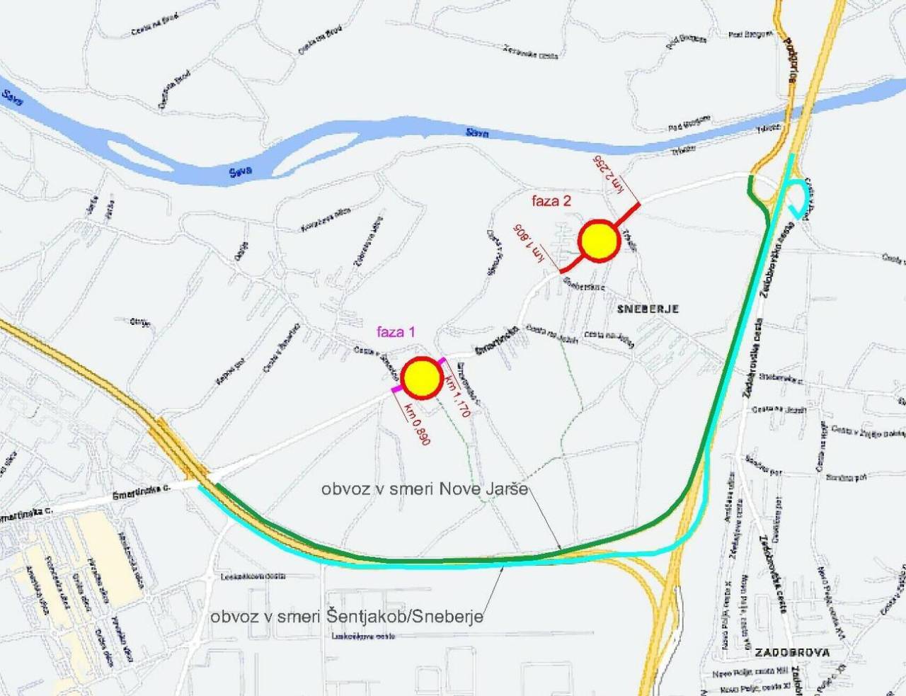 Obvoz bo po avtocesti in obvoznici med priključkoma Sneberje in Nove Jarše.