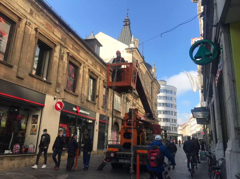 Že nekaj časa lahko po prestolnici spremljamo prizore, kako delavci okrašujejo mesto.