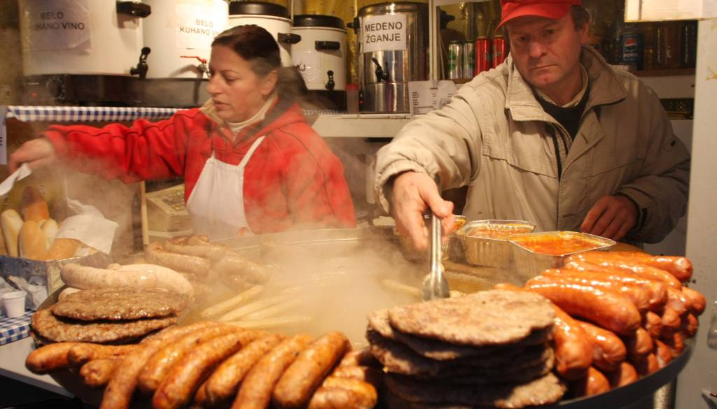 Praznična Ljubljana je predvsem gostinska ponudba, kjer med čevapi in pleskavicami najdemo tudi ponudbo za otroke, na primer ocvrte miške ali pa churose.