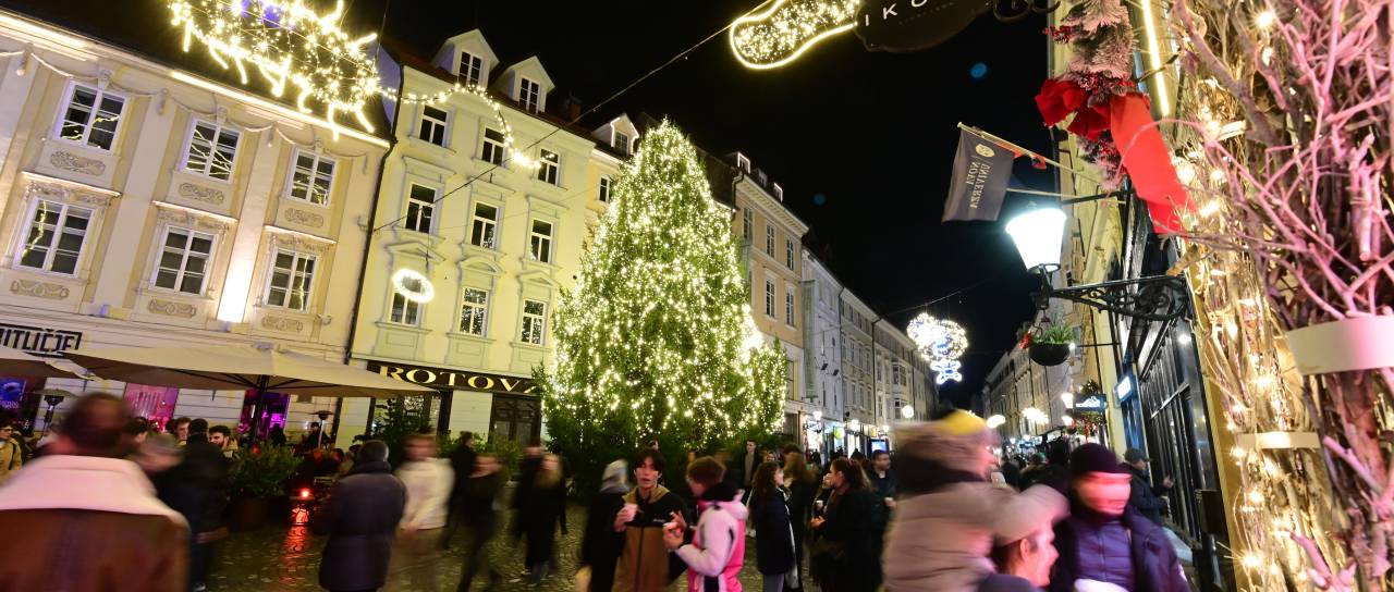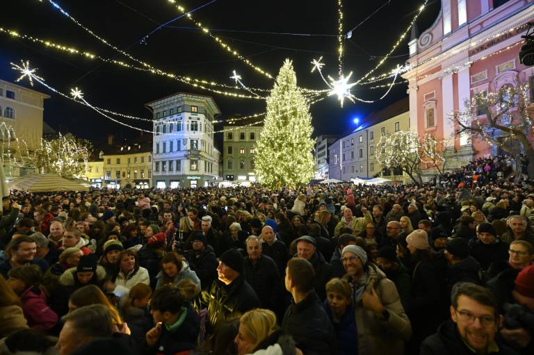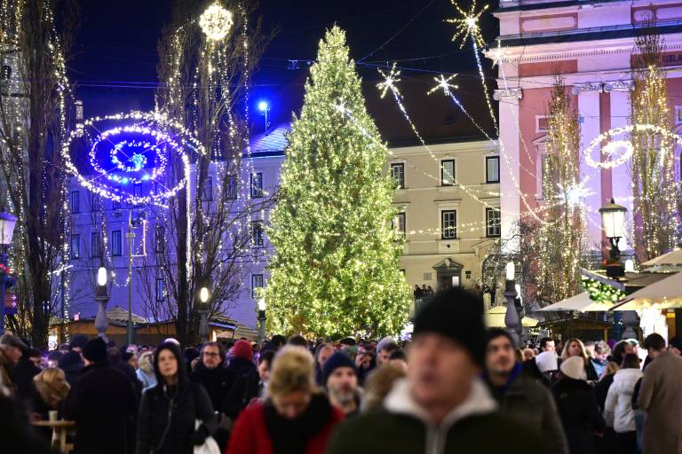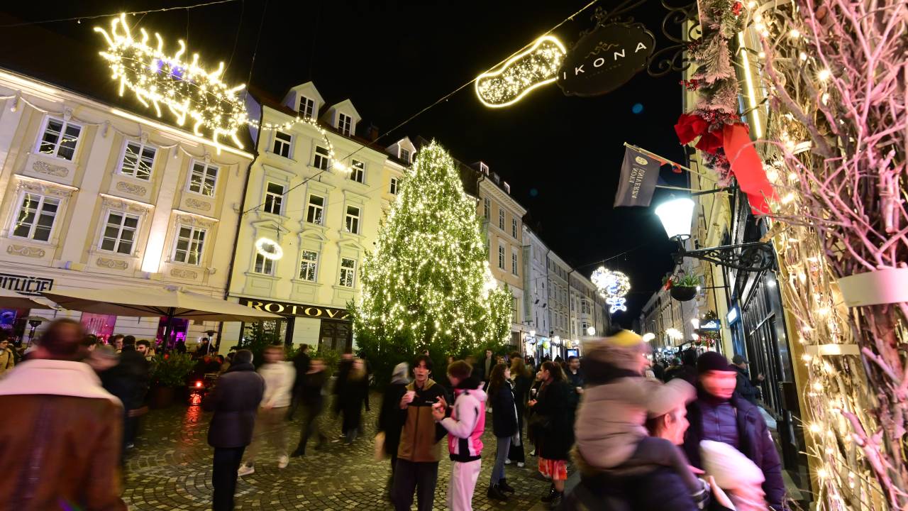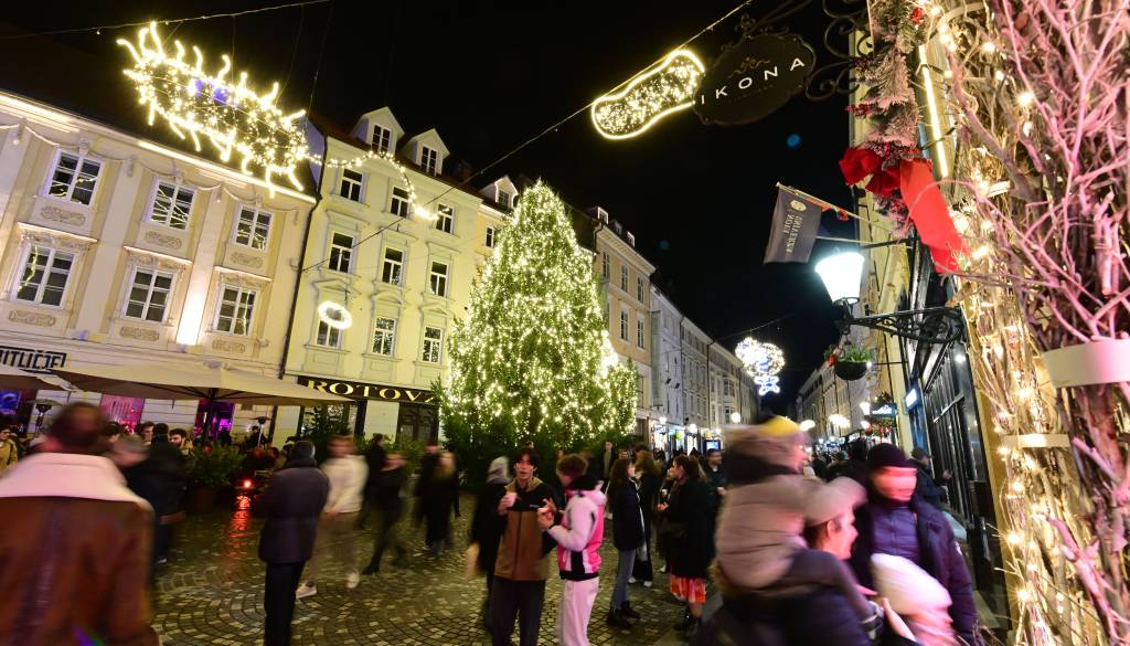 Letos so napeljali 50 kilometrov lučk, postavili 850 svetlobnih teles in okrasili veliko smreko na Prešernovem trgu, drugje pa postavili manjša drevesa.