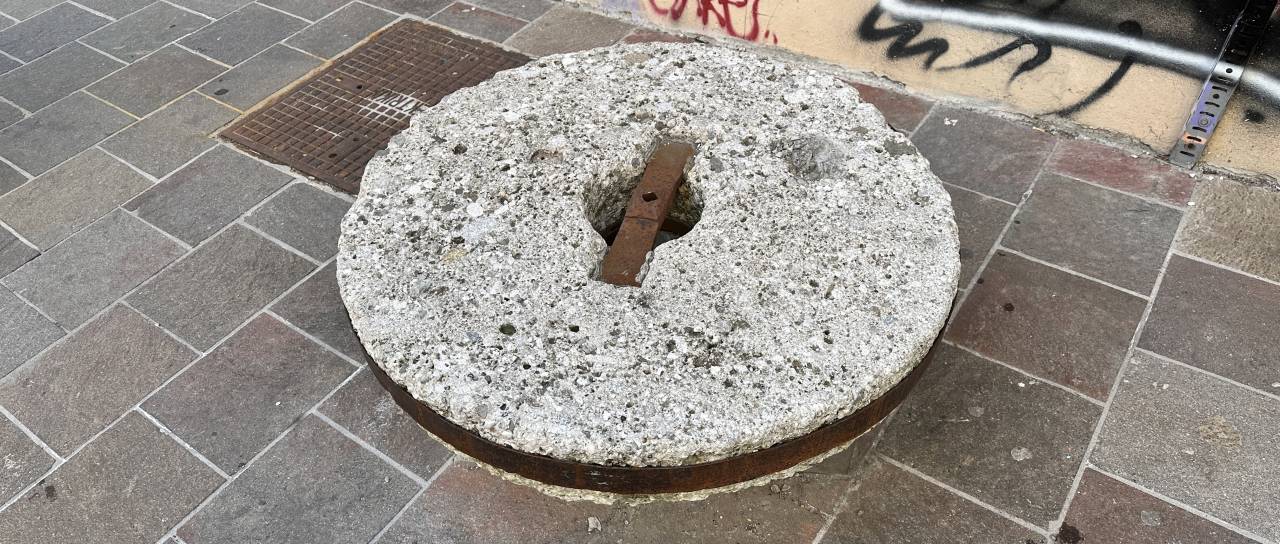 Mlinski kamni, ki se nahjajo na križišču s Prečno ulico in so lahko v toplih mesecih tudi prostor za sedenje, nosijo zgodbo, ki sega v 17. stoletje.