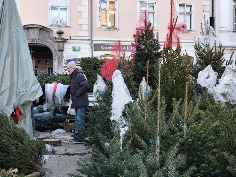 »Cene so odvisne od same smrečice; kakšne vrste je, kako je visoka, kako je košata, kakšen lesk ima,« nam razloži prodajalec in se brž zagovori s parom srednjih let. Iz pogovora je razbrati, da ju s smrečicami zalaga že vrsto let.