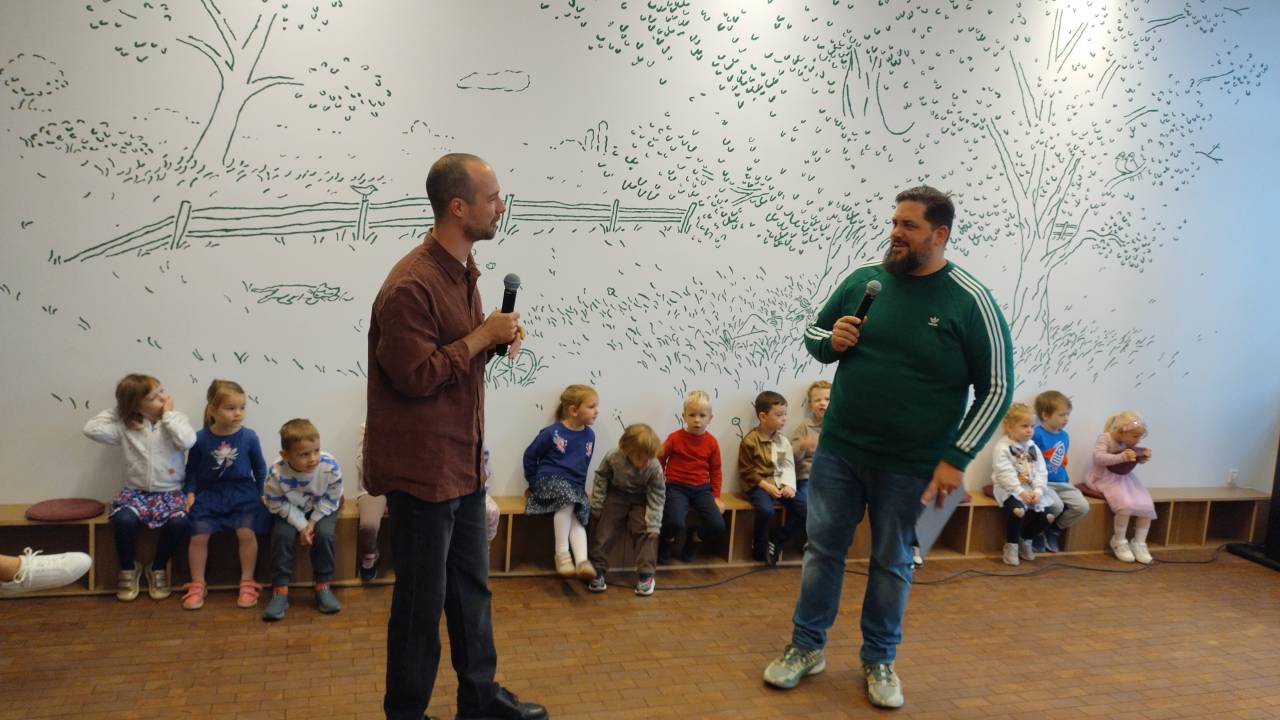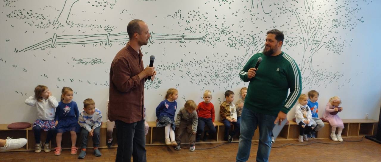 Otvoritev poslikave je vodil pri otrocih nadvse priljubljeni Boštjan Gorenc – Pižama, ki ga poznamo kot pisatelja, prevajalca, igralca, komika in zdaj še povezovalca prireditev.