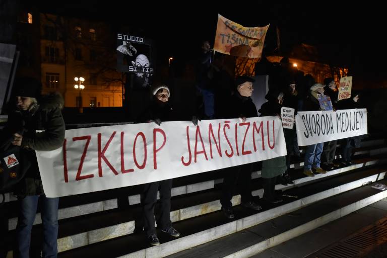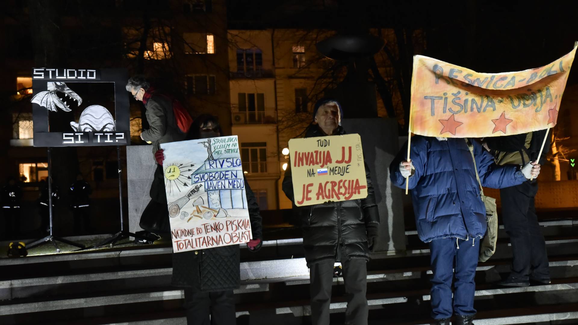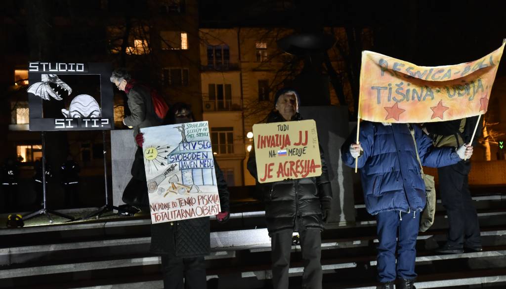Protestniki so tudi opozorili na trenutno dogajanje na Radioteleviziji Slovenija, ki je po njihovem mnenju še en primer, kako Janša trenutno stanje izrablja za podreditev javnega medija svojim lastnim interesom.