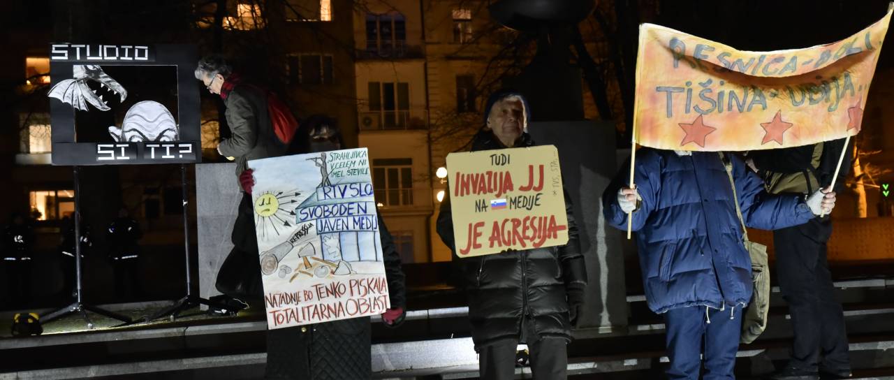 »Protivojni shodi so po celem svetu v domeni civilne družbe in prebivalstva, samo v Sloveniji se ga je lotil organizirati predsednik vlade, ki že dve leti aktivno preprečuje vse javne shode in proteste, kar očitno kaže na degutantno nabiranje predvolilnih političnih točk,« so izpostavili petkovi protestniki.