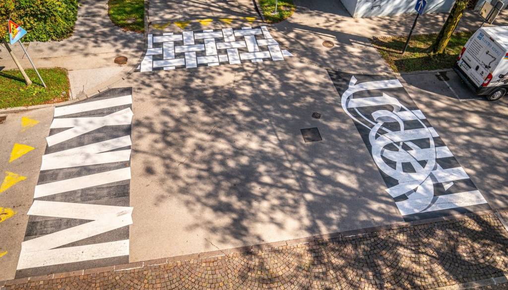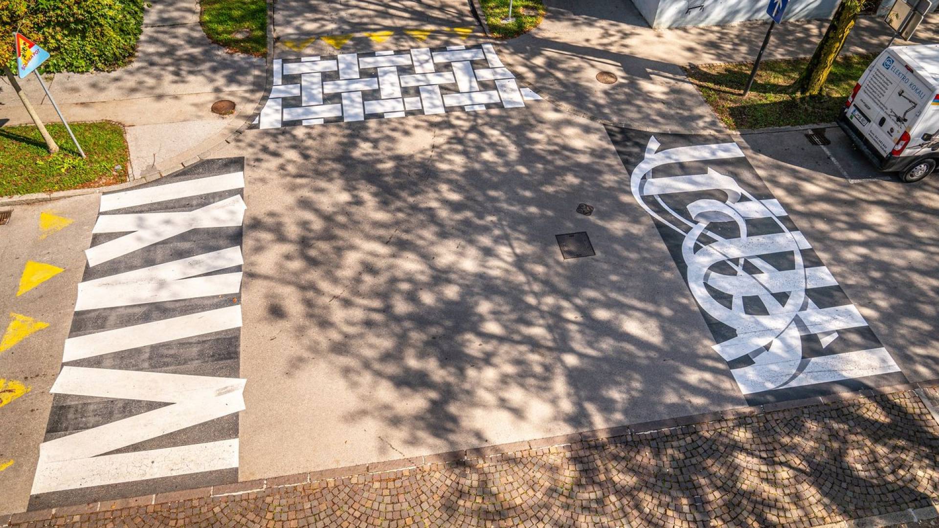 V križišču ulic Privoz in Prule so zarisali tri kreativno zasnovane prehode za pešce.