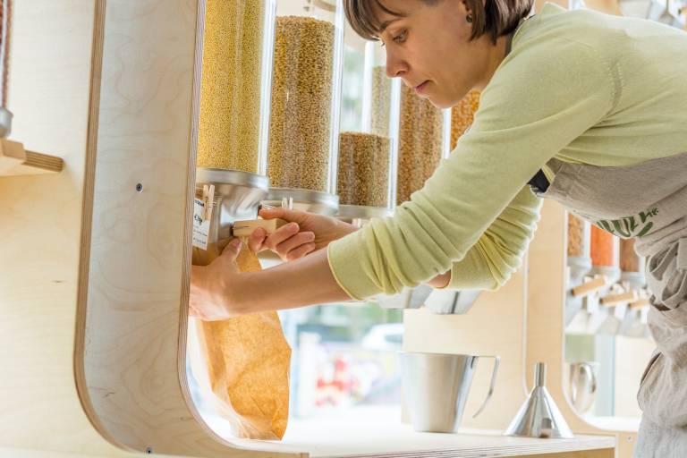 V ljubljanskem Rifuzlu ne boste našli embalaže za enkratno uporabo. Tak način nakupovanja je med Slovenci vse bolj priljubljen.