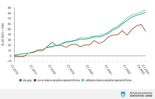 Cene rabljenih stanovanj in hiš na četrtletni ravni neprenehoma rastejo že več kot tri leta. Na četrtletni ravni so se rabljene stanovanjske nepremičnine podražile za 2,5 odstotka – rabljene hiše za 6,4 odstotka, rabljena stanovanja pa za 0,2 odstotka.