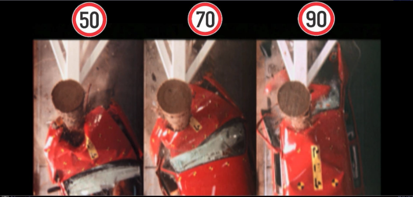 Na podlagi statističnih podatkov je dokazano, da je v primeru trka vozila v pešca ali kolesarja pri 30 kilometrih na uro tveganje za smrtne ali hude poškodbe pešca relativno majhno. Pri višjih hitrostih se tveganje izrazito poveča. Trk avtomobila pri hitrosti 50 kilometrov na uro v pešca je enak padcu z višine 9,8 metra. Pri hitrosti vozila s 60 kilometrov na uro, je verjetnost preživetja pešca samo še 10 odstotna, tveganje za smrt pa kar 90 odstotno.