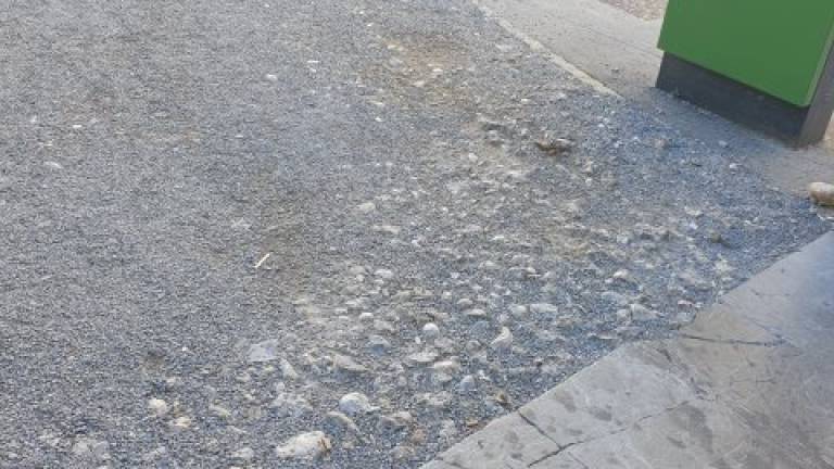 »Ne le, da je vse skupaj neugledno, pesek in luže ogrožajo mimoidoče. Boste kaj ukrepali? Če zemljišče ni vaše, boste dali pobudo lastniku, da sanira stanje, preden se kdo poškoduje?« je zapisal občan, ki je priložil tudi fotografijo.