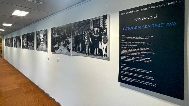 Nova čitalnica v Centralni tehniški knjižnici je opremljena tudi s fotografsko razstavo 'Obiskovalci' fotografa Gašperja Lešnika, ki je v črno-beli tehniki ujel utrinke študentskega življenja v knjižnici – od intenzivnega učenja do sproščenih pogovorov ob kavi.
