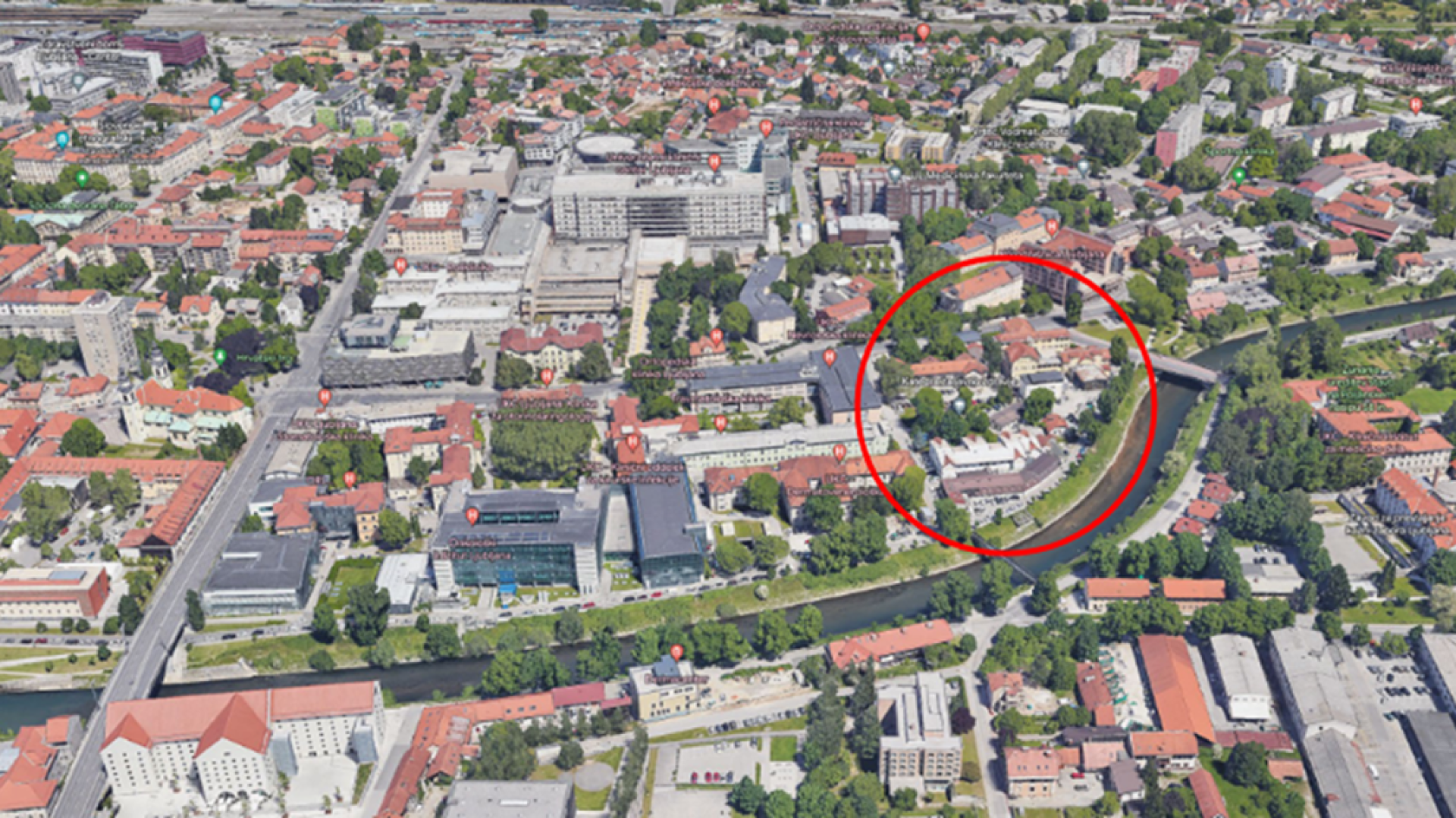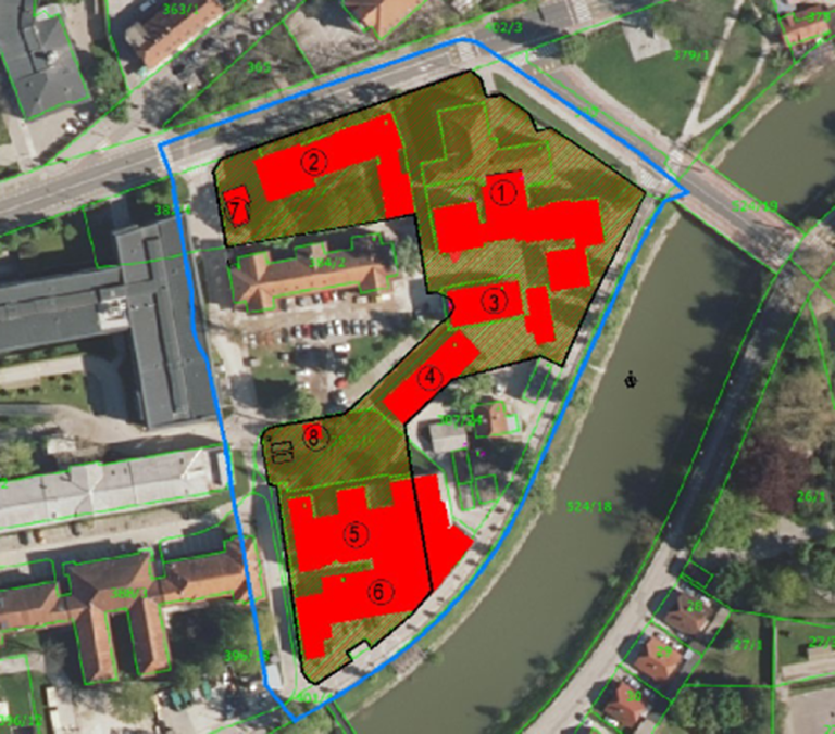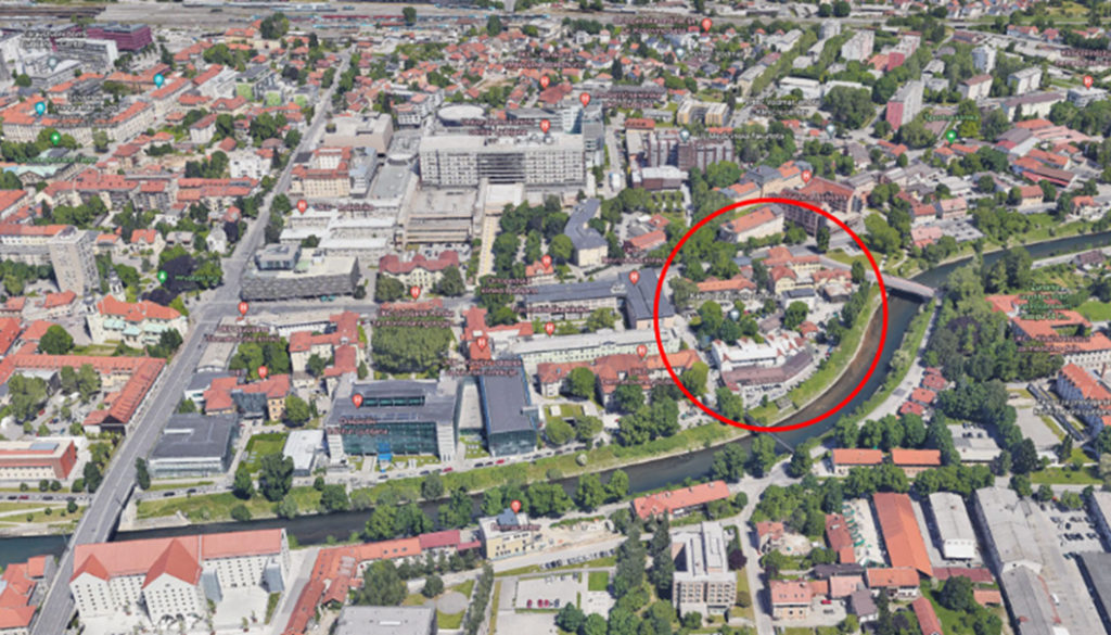 Širše območje obsega zemljišča, ki so v mešani lasti, in sicer so v lasti Mestne občine Ljubljana, Univerze v Ljubljani in UKC Ljubljana, torej države. Del obstoječih objektov bo treba odstraniti, predvidena pa je izgradnja skupno približno 25.000 kvadratnih metrov bruto tlorisnih površin ter izgradnja podzemnih garaž za skupno vsaj 130 parkirnih mest in pokrite kolesarnice z vsaj 160 parkirnimi mesti.