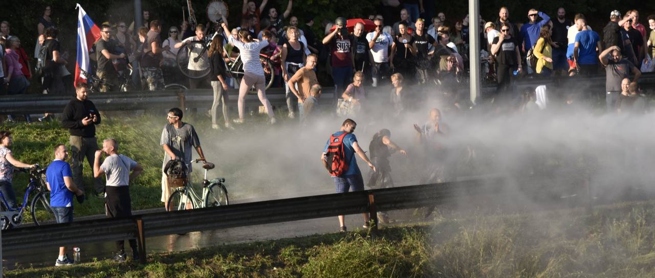 Policisti udeležence shoda v Ljubljani obveščajo, da je shod razpuščen zaradi zagotovitve varnosti vsem osebam. Policisti so zaradi zagotovitve varnosti pričeli z uporabo prisilnih sredstev. Vse pozivajo naj mirno zapustijo območje ljubljanske severne obvoznice in upoštevajo navodila in ukaze policistov.