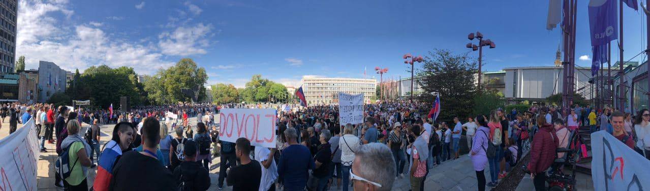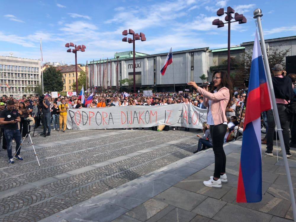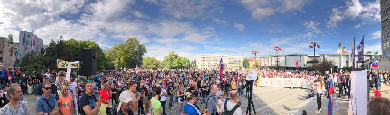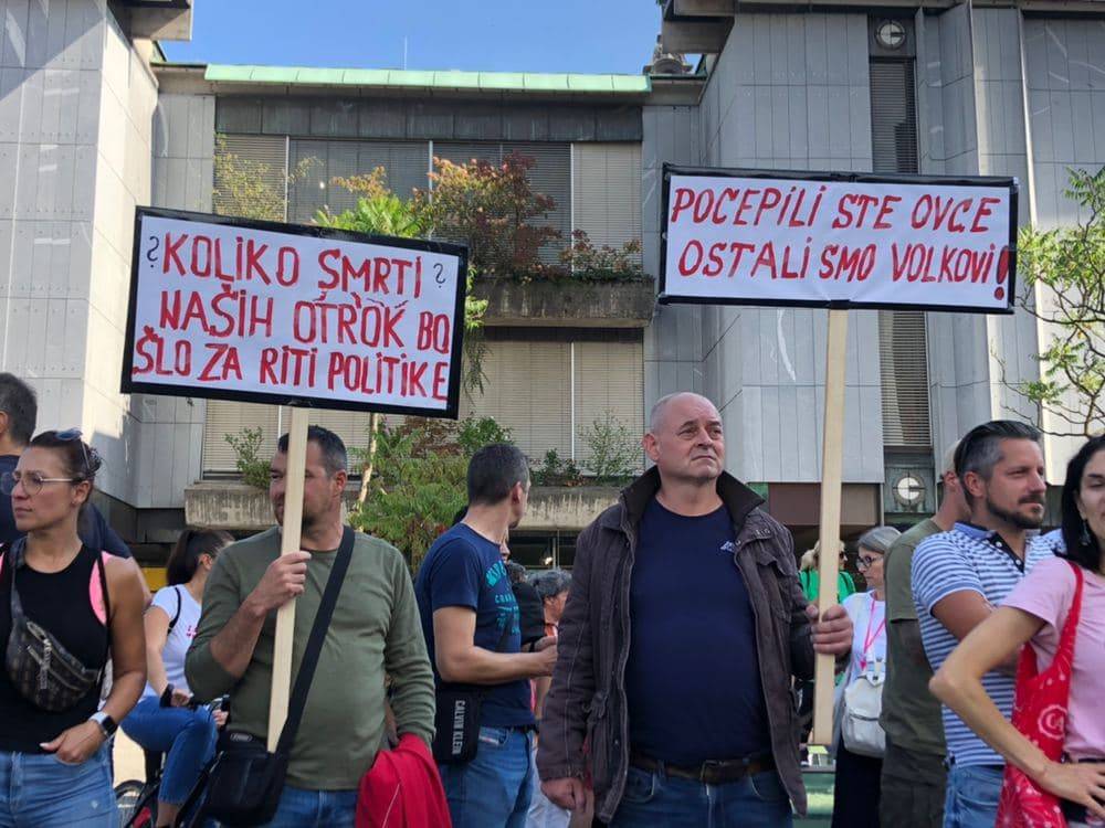 15.00 - Protesta se je udeležil tudi oče 20-letnice, ki je danes v UKC Ljubljana po zdravstvenih zapletih, domnevno povezanih s cepljenjem, umrla, poročajo Slovenske novice. »Želela si je kupiti svobodo. 16. septembra se je cepila s cepivom Janssen, da ne bo omejena z neumnostmi. Danes je ni več. Stara je bila 20 let. Ko prideš na cepilno mesto, te nihče ne opozori na možne zaplete. Samo številke so. Govori se o odstotkih. Moja Katja ni bila odstotek. Bila je Katja. Moja Katja,« je po poročanju Slovenskih novic dejal. Protestniki so nato vzklikali: »Morilci!« še poročajo.