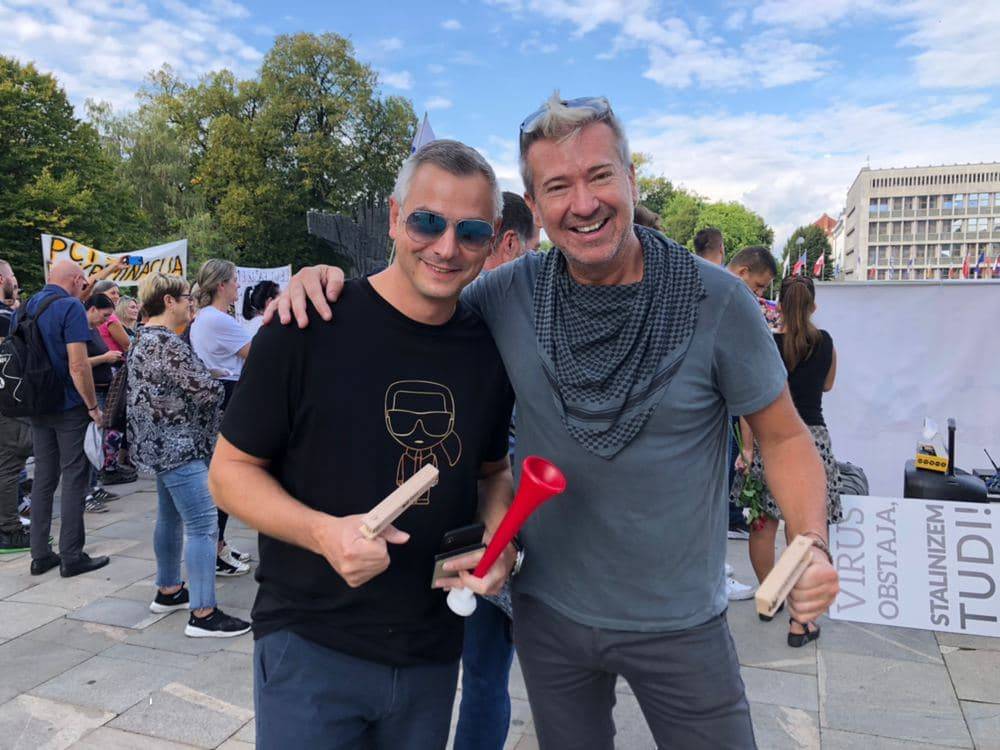 14.00 - Zbrani poslušajo nagovore, ne manjka pa niti glasbena spremljava, vrtijo od pesmi Freedom Georga Michaela do Avsenikove Na Golici. Na protestih je tudi tokrat Werner.