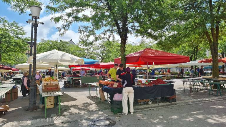 Čeprav je večina češenj dobavljenih iz Italije, pa na tržnici najdemo stojnico Kmetije Šketelj, kjer prodajajo domače maline in češnje iz Goriških brd.