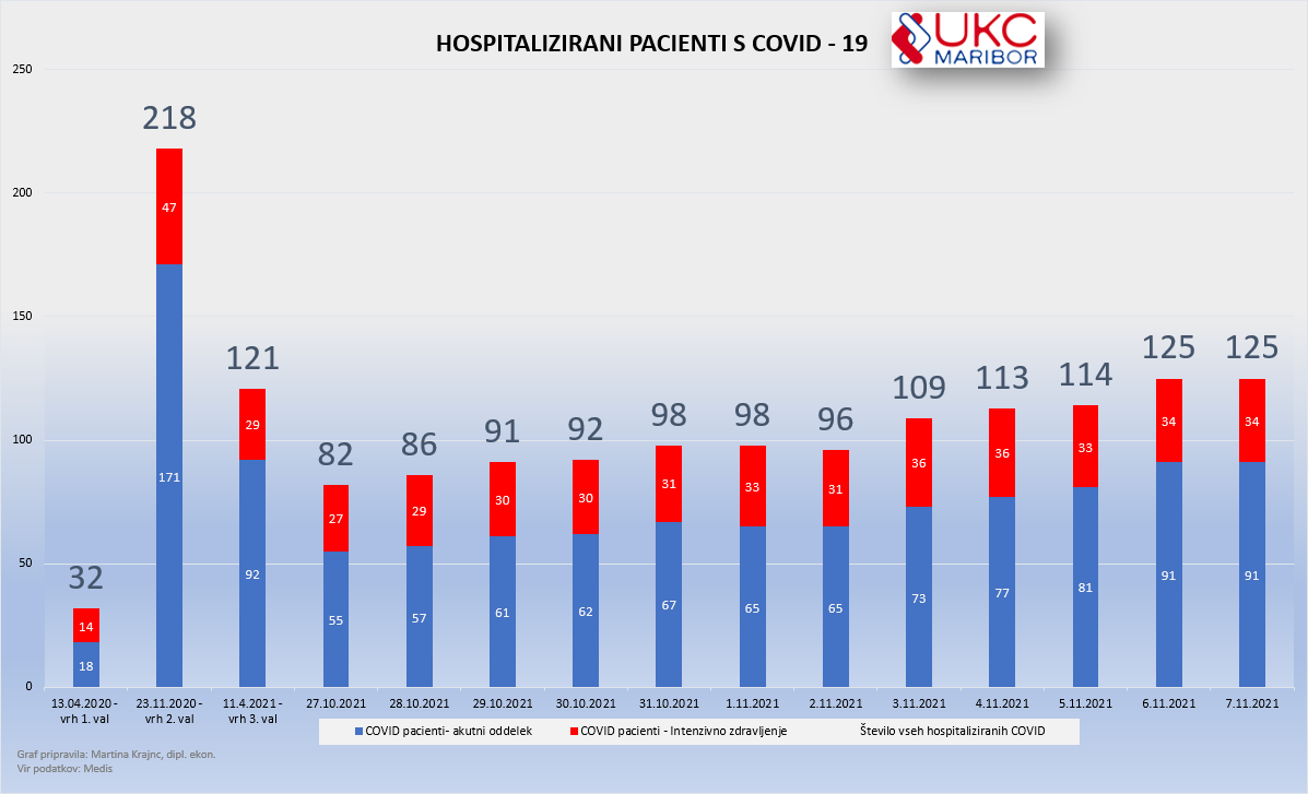 Kot so včeraj sporočili iz mariborske bolnišnice, je število vseh hospitaliziranih covid bolnikov naraslo na 125.