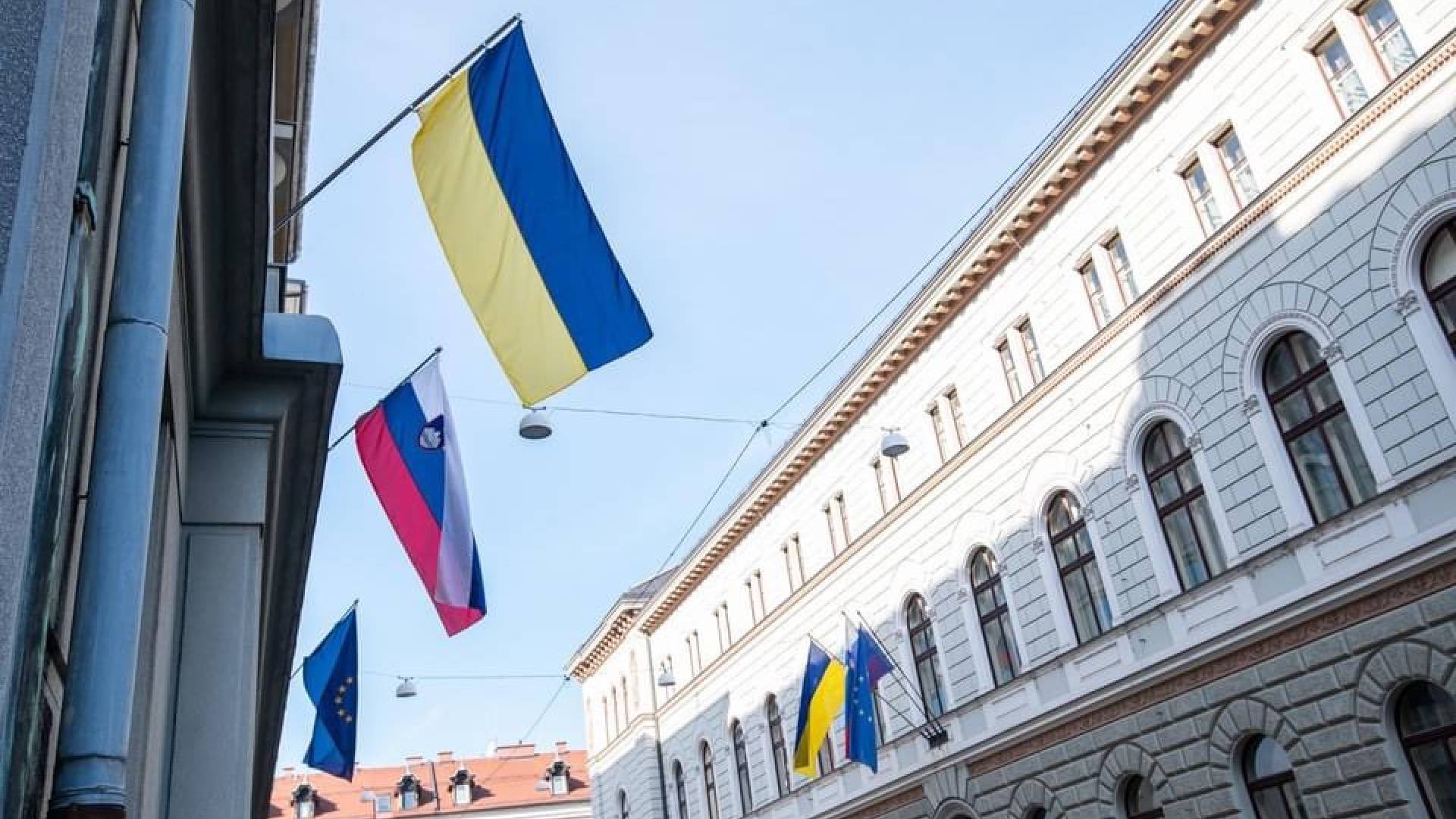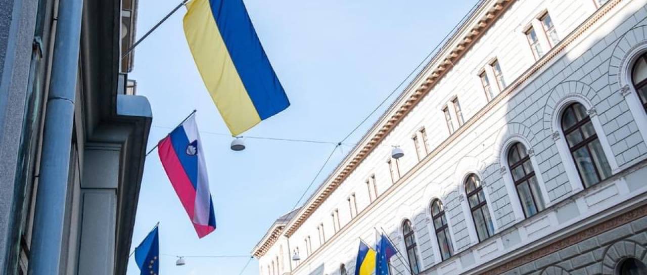 V naši prestolnici so v znak solidarnosti Ukrajini na vladnih zgradbah izobesili ukrajinske zastave.