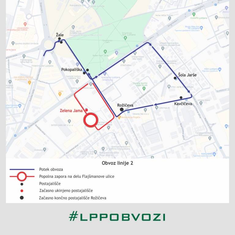 Obvoz bo imela tudi linija 2 Ljubljanskega potniškega prometa. Trasa bo sledeča:
