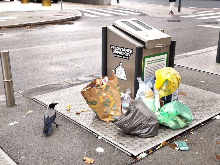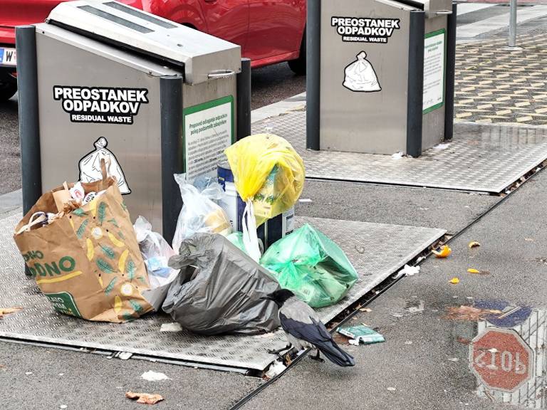 Meščan je na občino naslovil vprašanje glede podzemne zbiralnice na Grudnovem nabrežju, okoli katere so se zbrale vrečke smeti, raznašali pa so jih tudi vrane in mačke.