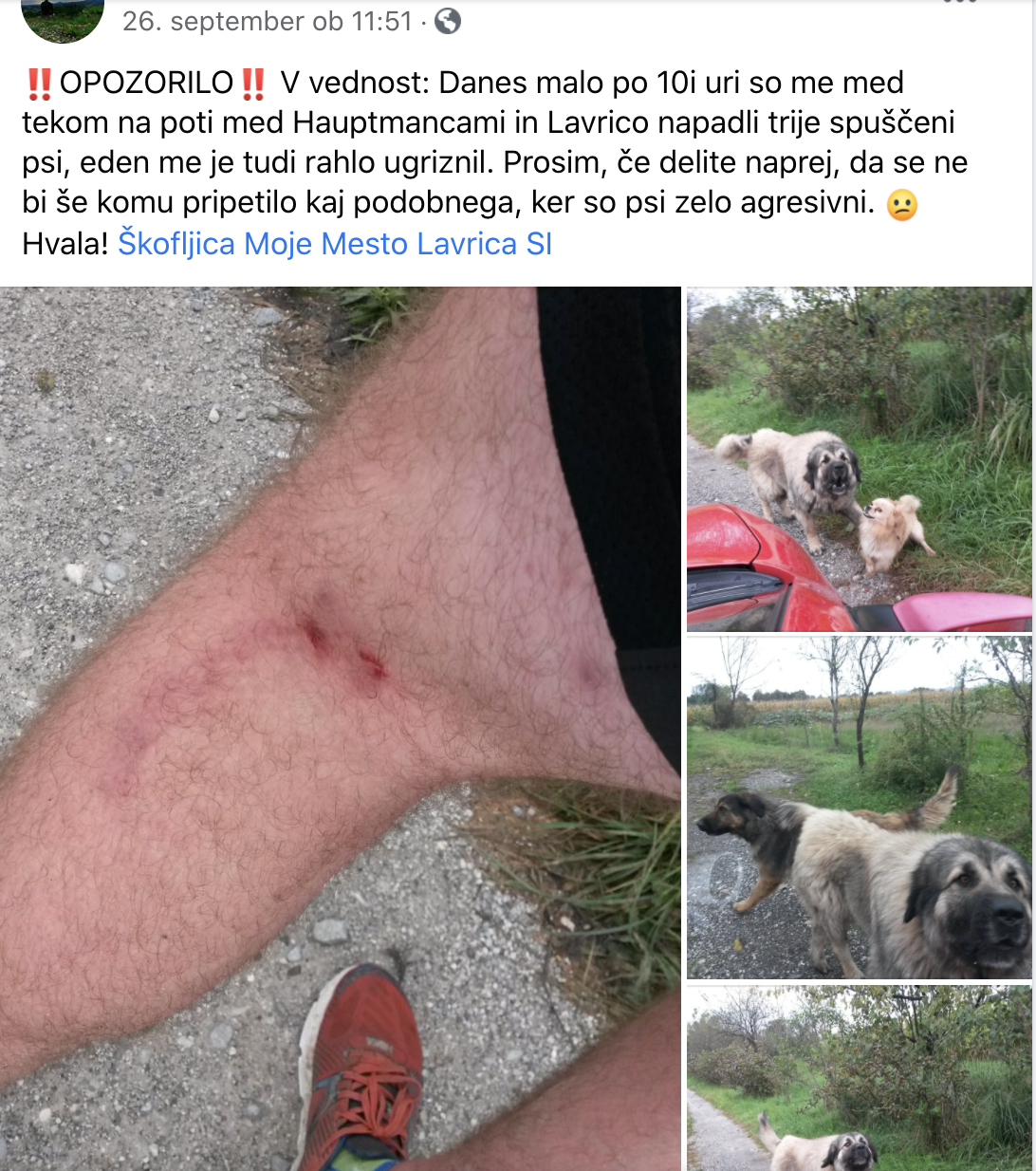 Kako se lahko sproščujoč tek hitro spreobrne, je na lastni koži občutil Ljubljančan, ki so ga med tekom po Ljubljanskem barju napadli spuščeni psi. Na dogodek je opozoril na svojem Facebook profilu.