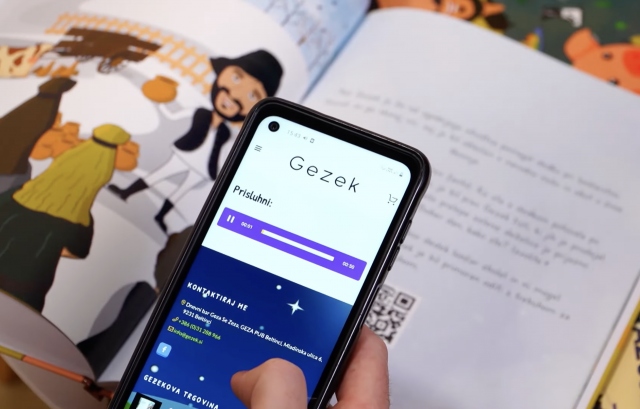 »Če bi vaš otrok rad prebral knjigo, vendar še ni dovolj vešč branja ali ste mogoče kot starš, po napornem dnevu v službi, enostavno preutrujeni za doživeto branje pravljice, lahko v Gezekovi slikani knjigi najdete QR kode, ki jih lahko 'poskenirate' in si olajšate delo tako, da namesto vas besedilo doživeto prebere kar glas pripovedovalca,« pojasnjuje.