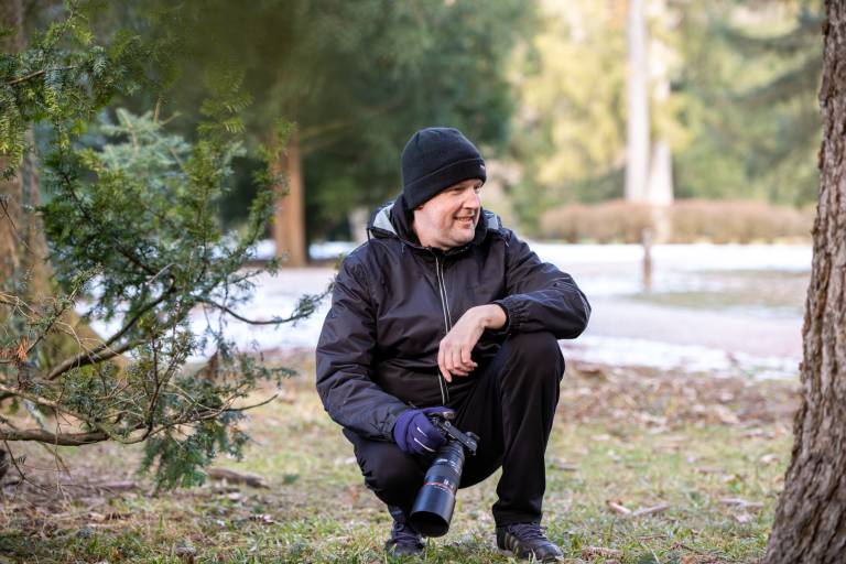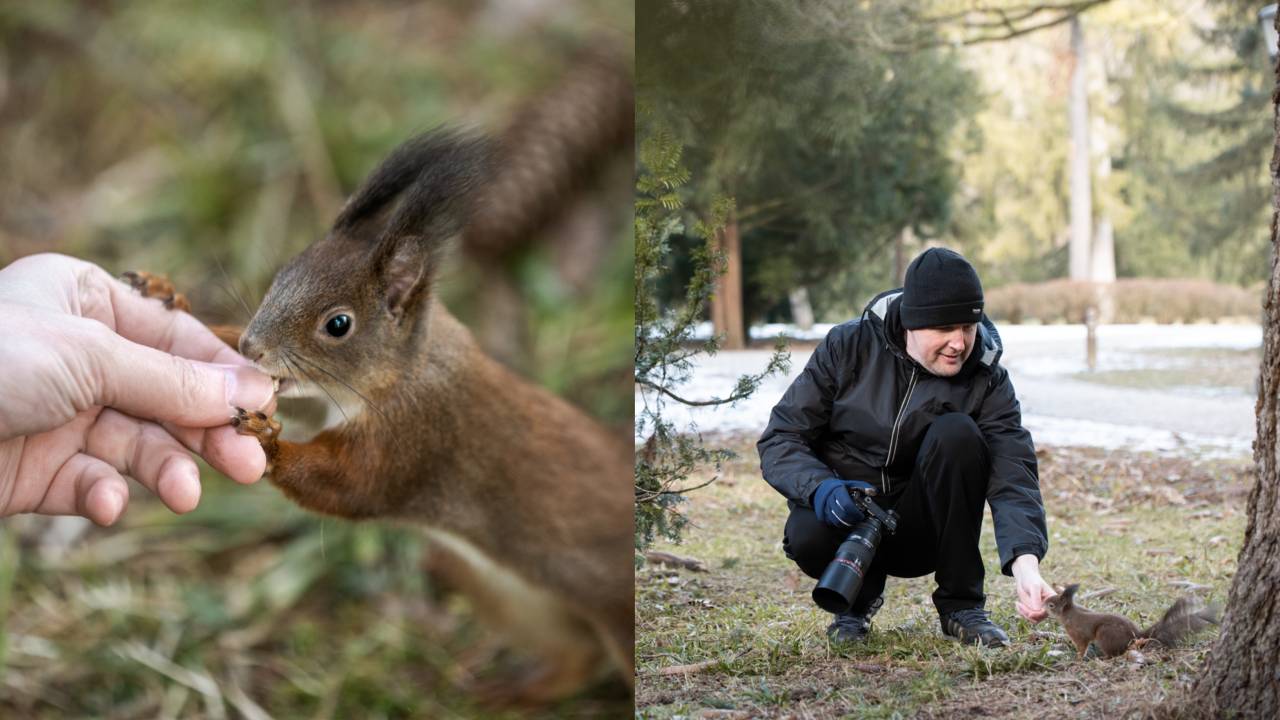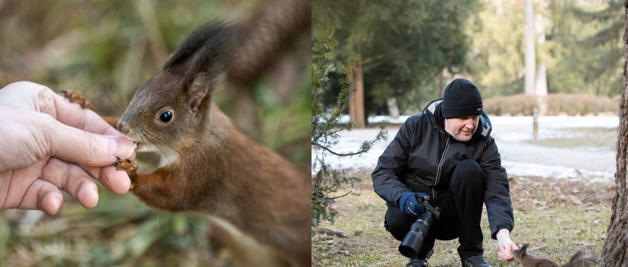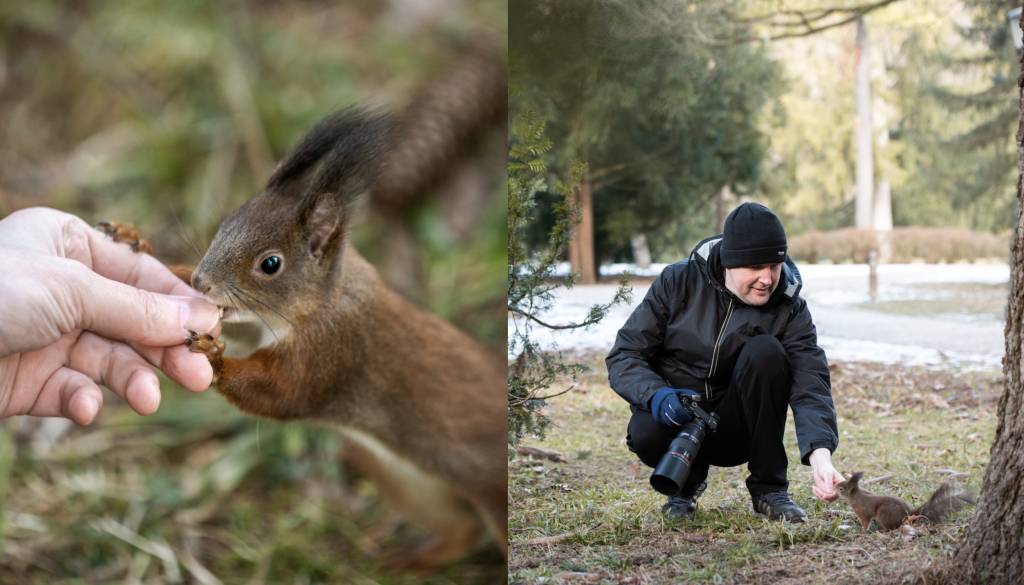 Robert Vovk prihaja iz Grosuplja, vsak vikend pa obišče ljubljanski Tivoli, kjer več ur fotografira rdeče veverice.