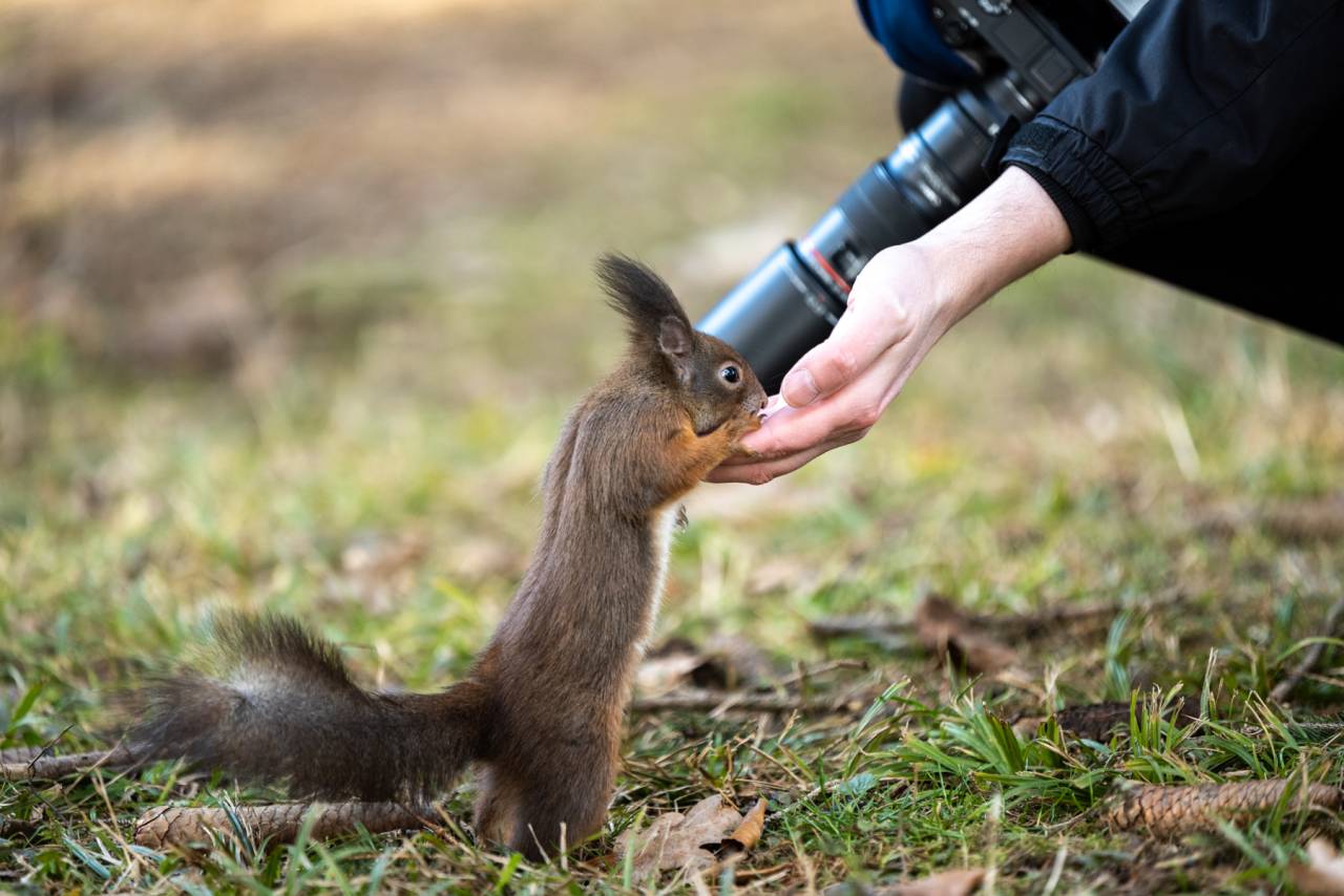 »S fotografijami želim zajeti njihov karakter, najboljše jih je ujeti brez hrane, ker imajo drugače vedno isto pozo. Imel sem tudi izkušnjo s pogumno veverico (Alvinom), ki je objektiv prijela in kar nekaj časa preživela ob njem. Bilo je neverjetno,« za Ljubljanainfo pove Vovk.